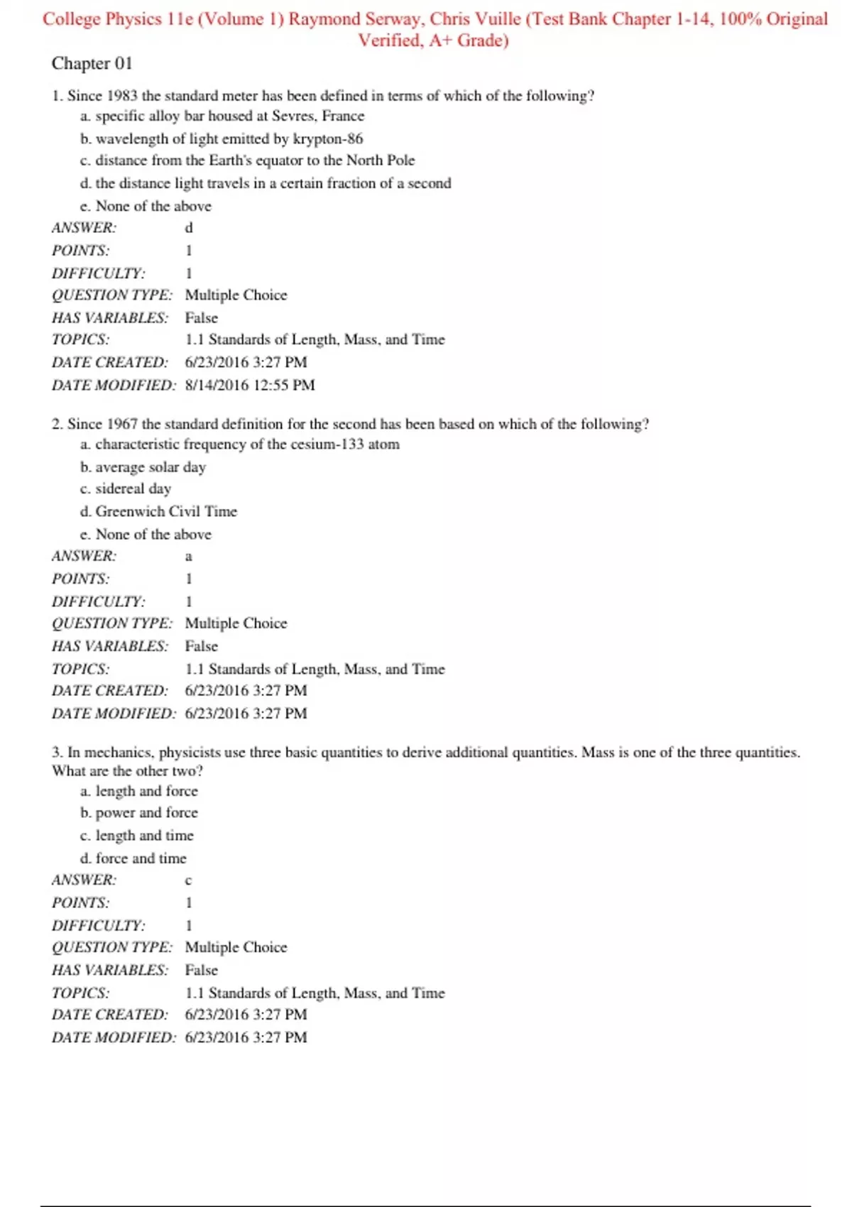 Solutions Manual with Test Bank for College Physics 11th Edition By (Volume 1) Raymond Serway, Chris Vuille ( Chapter 1-14, 100% original verified, A Grade)