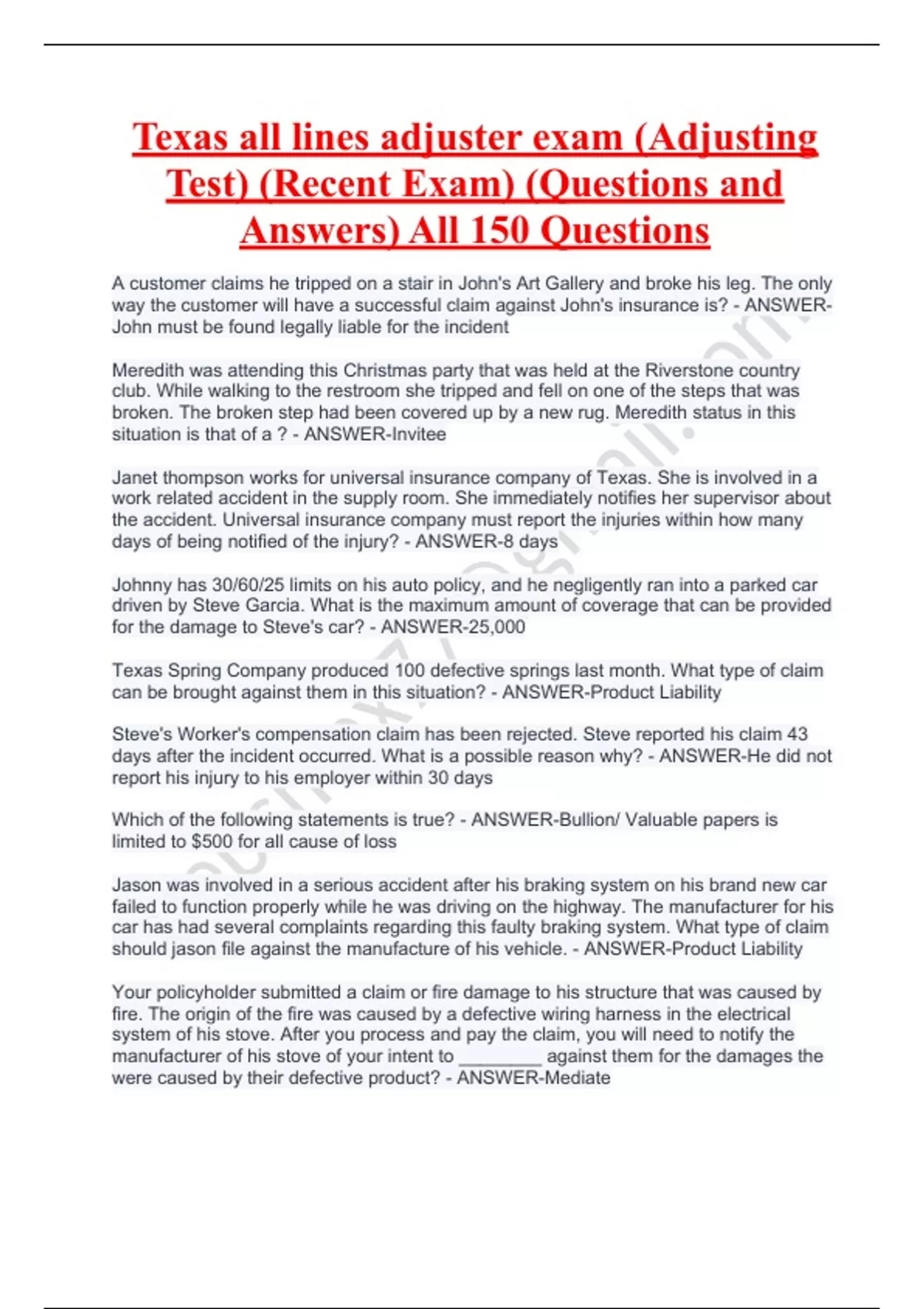 Texas All Lines Adjuster Test Exam Bundle