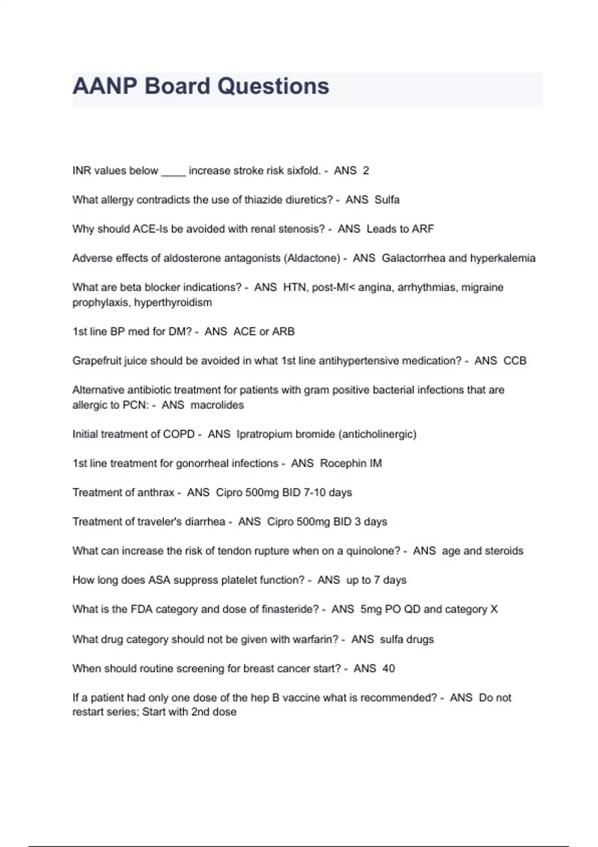 AANP Board Questions And Answers