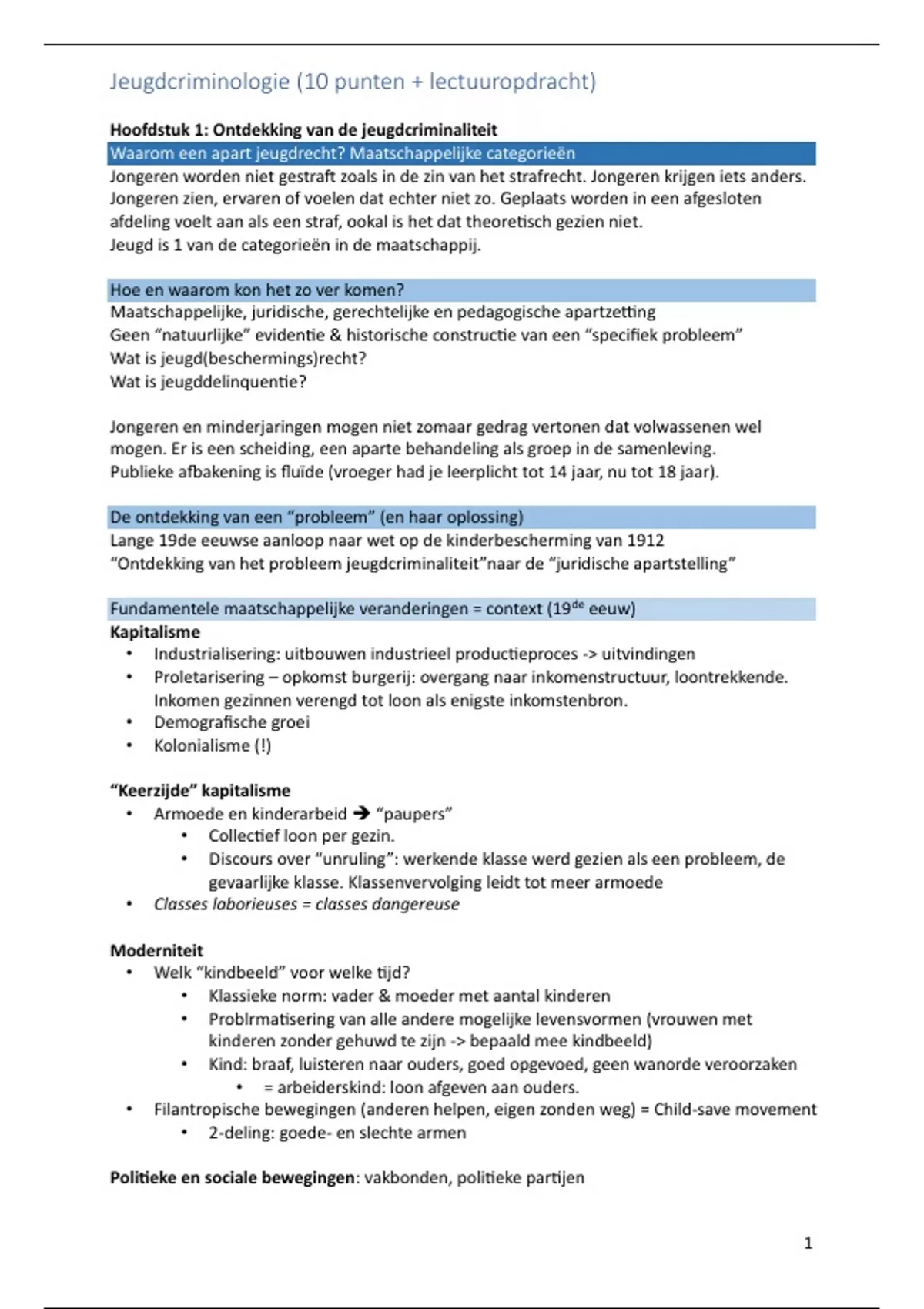 Het is eerder een cursus dan een samenvatting, maar kan ook gebruikt worden als samenvatting. Het zijn alle slides in een word document gezet met lesnotities bij. Hieraan is structuur gegeven doormiddel van titels en ondertitels. Naar elke les geweest en altijd het belangrijke erbij gezet. Zowel document jeugdrecht als document jeugdcriminologie.