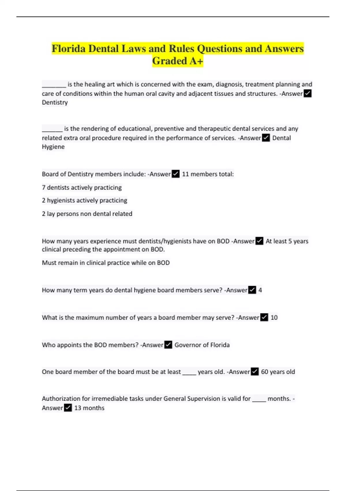 Florida Law Dentistry Exam Questions and Answers Graded A+