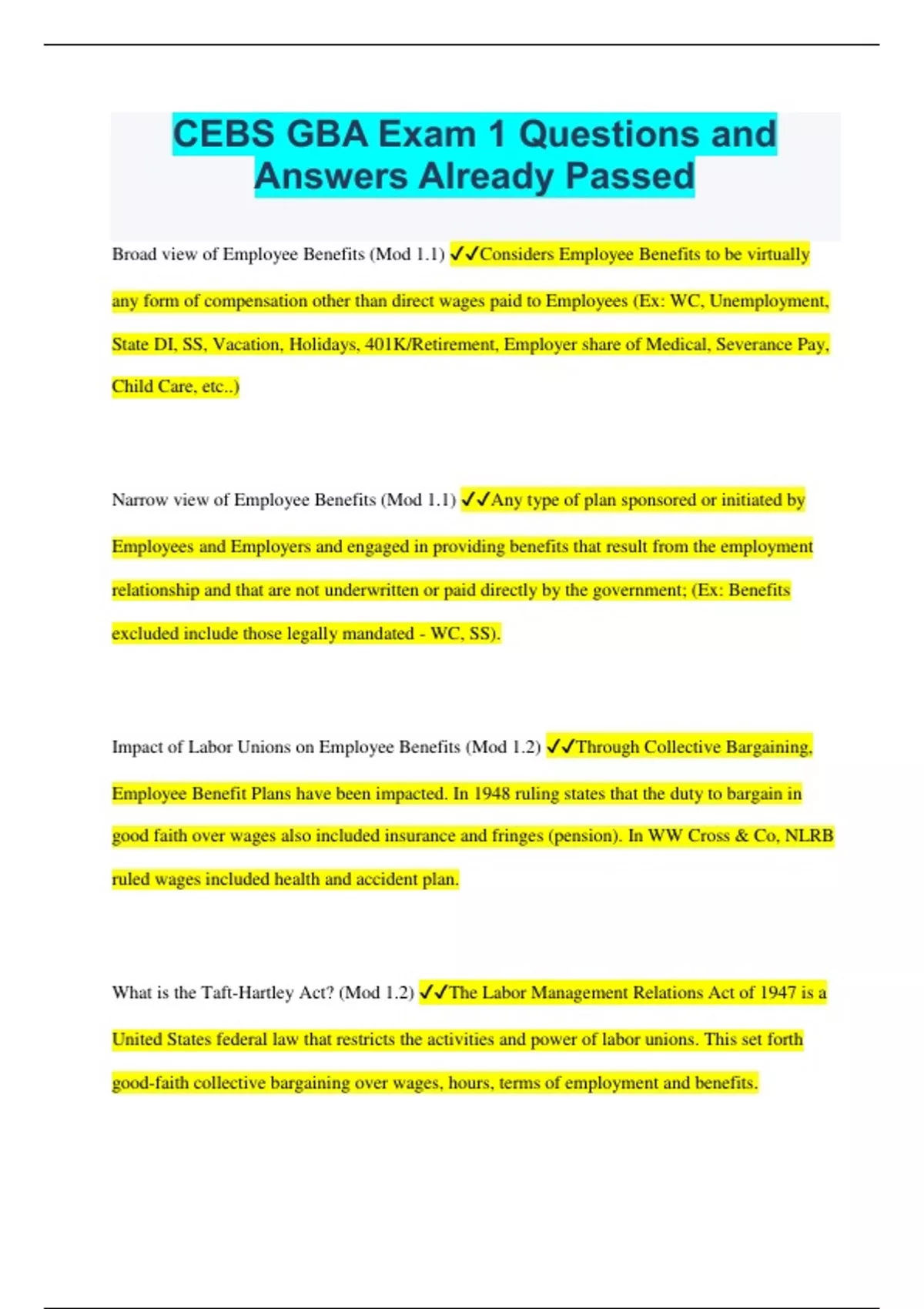 CEBS GBA Bundled Exams Questions and Answers Latest Versions (2023/2024) (Complete and Verified)