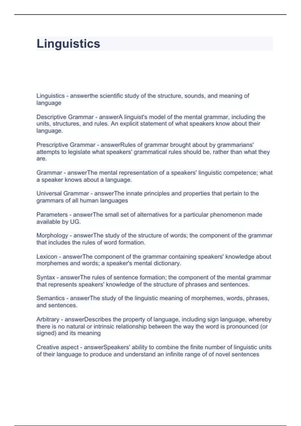 LINGUISTICS TEST EXAM COMPILATION BUNDLE 2023