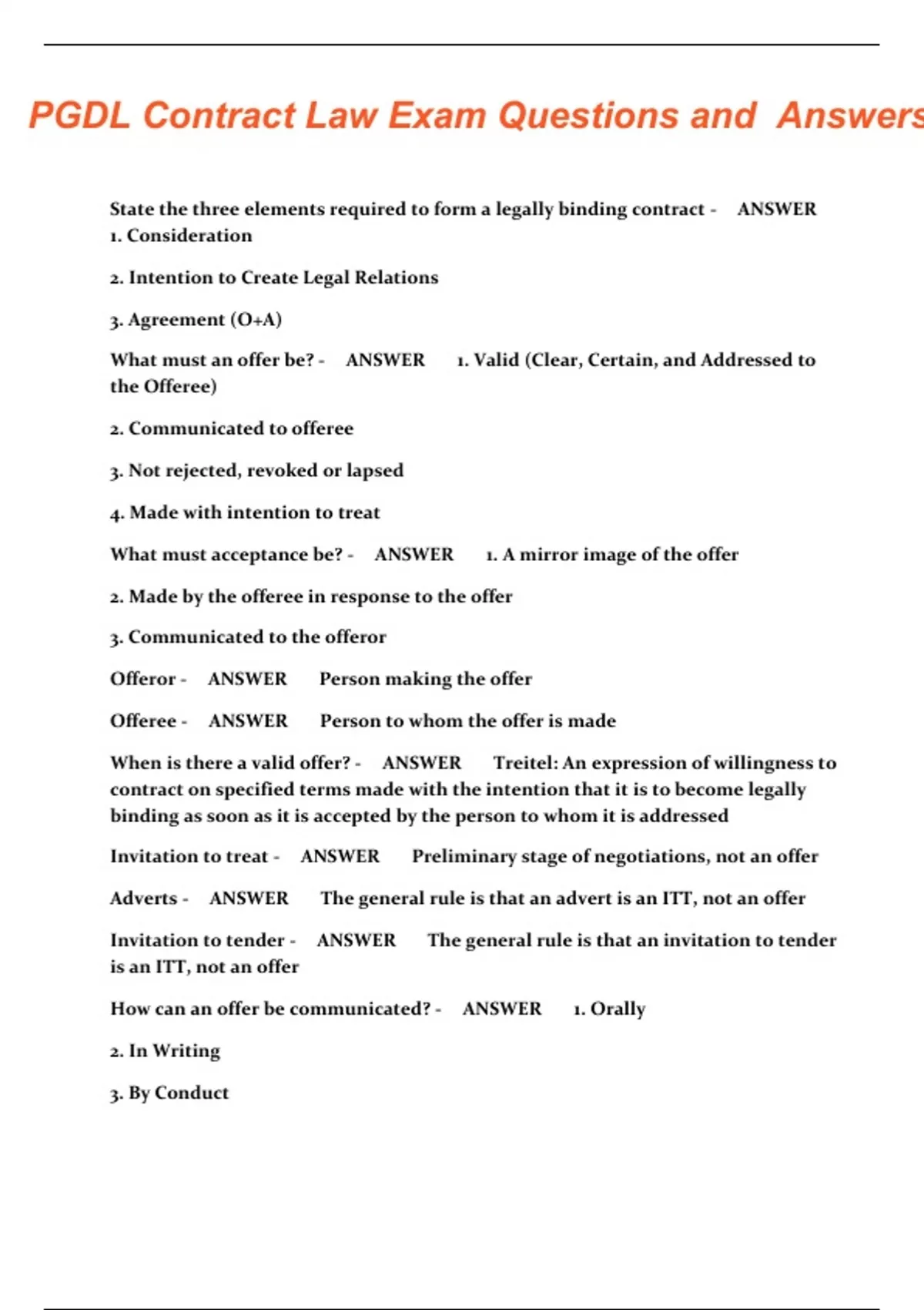 PGDL Univesity of Law Criminal/Public/ Law Exam BUNDLE Questions and Answers