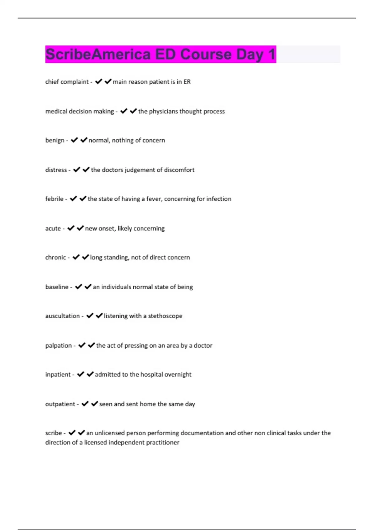 ScribeAmerica ED Course Day 1 Questions With Correctly Solved Solutions.