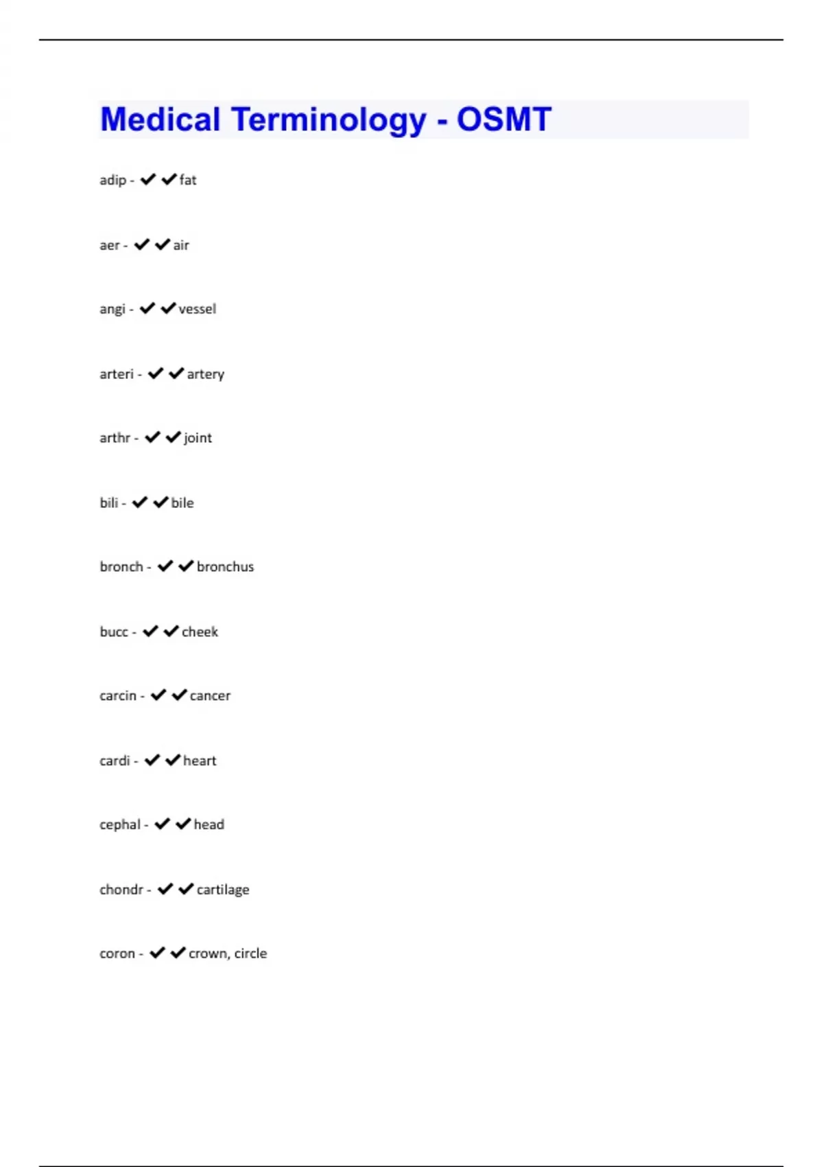 Medical Terminology - OSMT Questions With Correctly Solved Solutions.