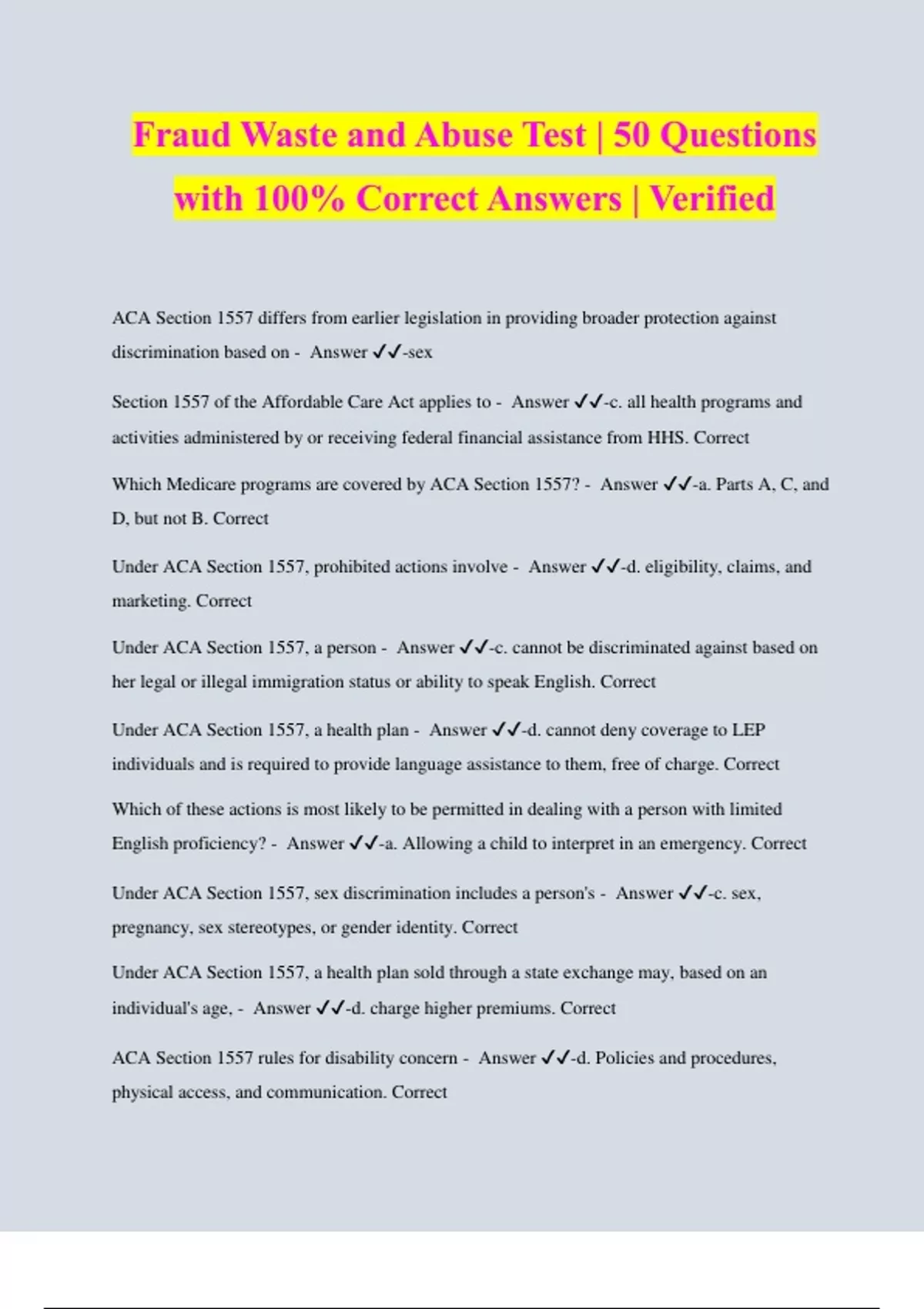 Fraud Waste and Abuse Test | 50 Questions with 100% Correct Answers | Verified