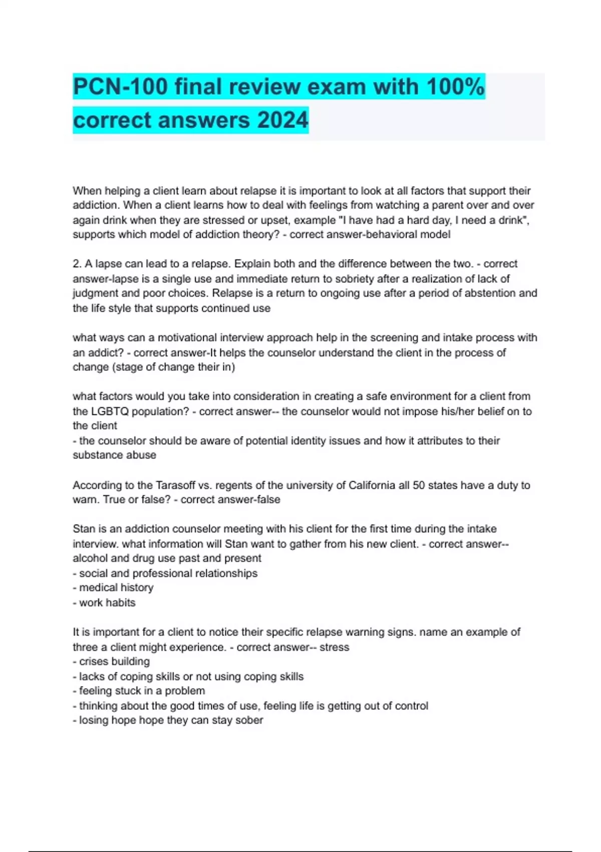 PCN-100 Final Review Exam With 100% Correct Answers 2024