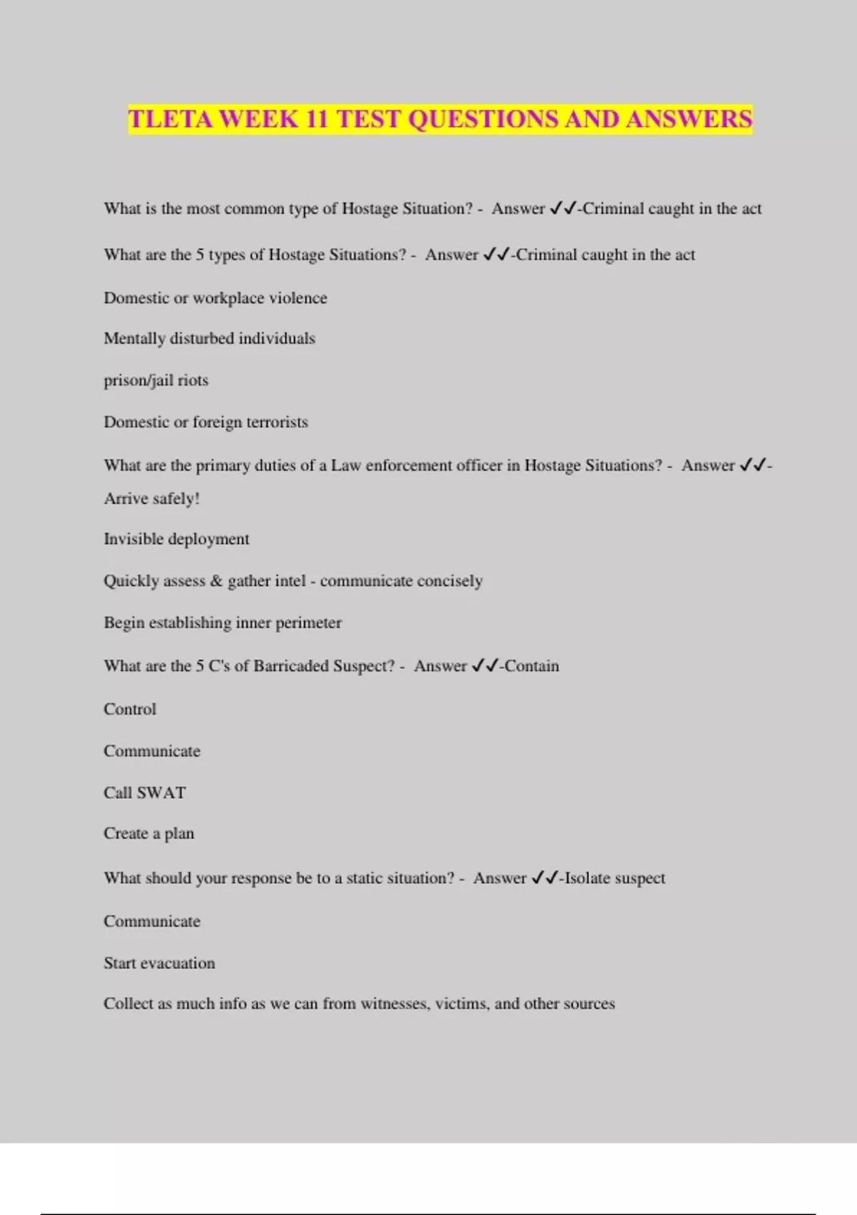 TLETA WEEK 11 TEST QUESTIONS AND ANSWERS