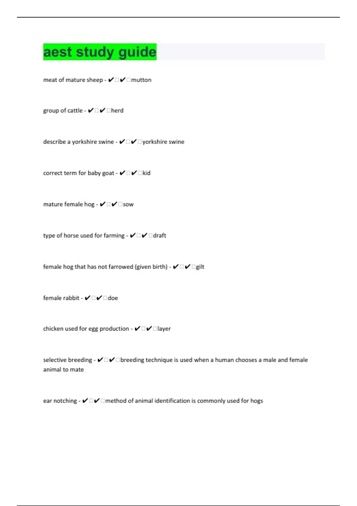 AEST Associate Of Agriculture Industry Certification Study Guide 93 Questions with 100% Correct Answers | Verified | Latest Update |