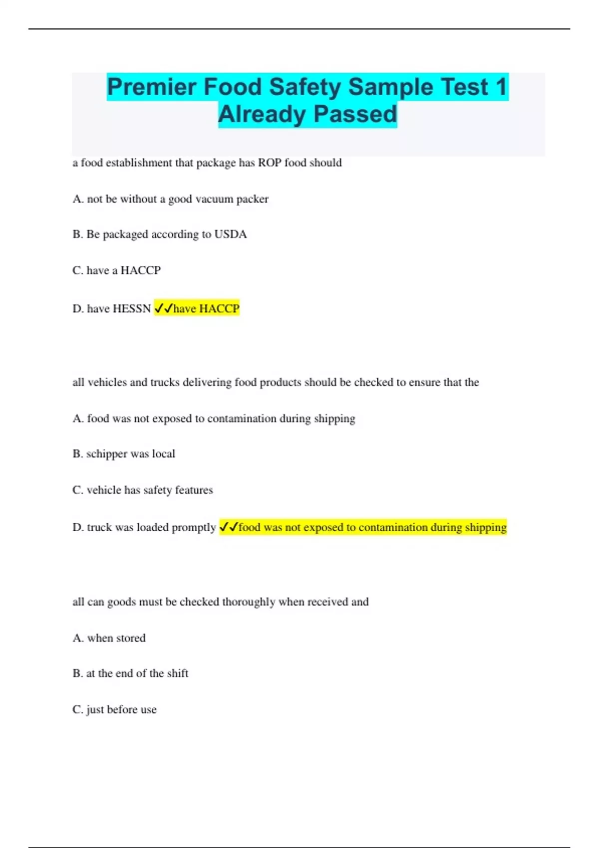 Premier Food Safety Bundled Exams Questions and Answers Rated A+