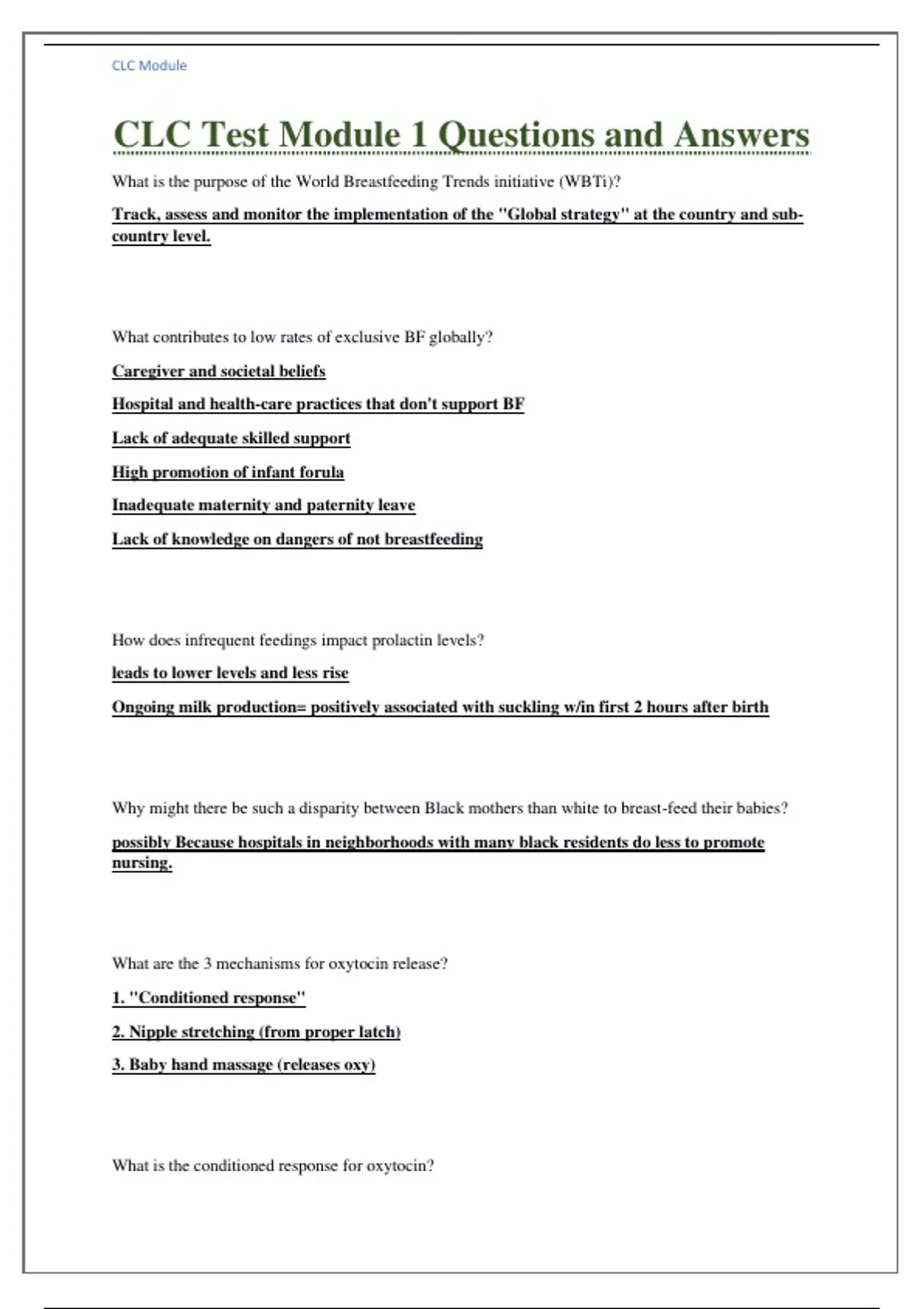 CLC Test Module 1 and CLC Test Module 2 |Questions and Answers,CLC Test Module 1 and CLC Test Module 2 |Questions and Answers