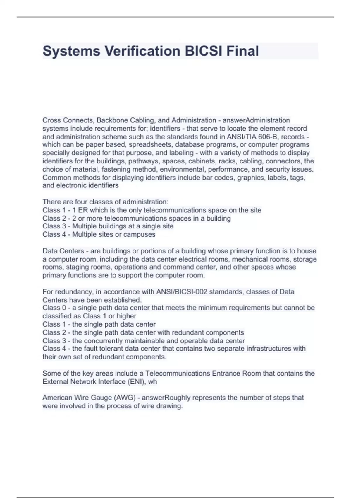 Exam (elaborations) BICSI 1 & 2 Questions and Answers Graded A+ Exam (elaborations) BICSI ch 1 principles of transmission Questions and Answers Latest updated 2024 Exam (elaborations) BICSI chapter 4 Questions and Answers Verified Exam (elaborations) bicsi chapter 5 Questions and Answers Rated A+ Exam (elaborations) BICSI IN225 7.0, Instal