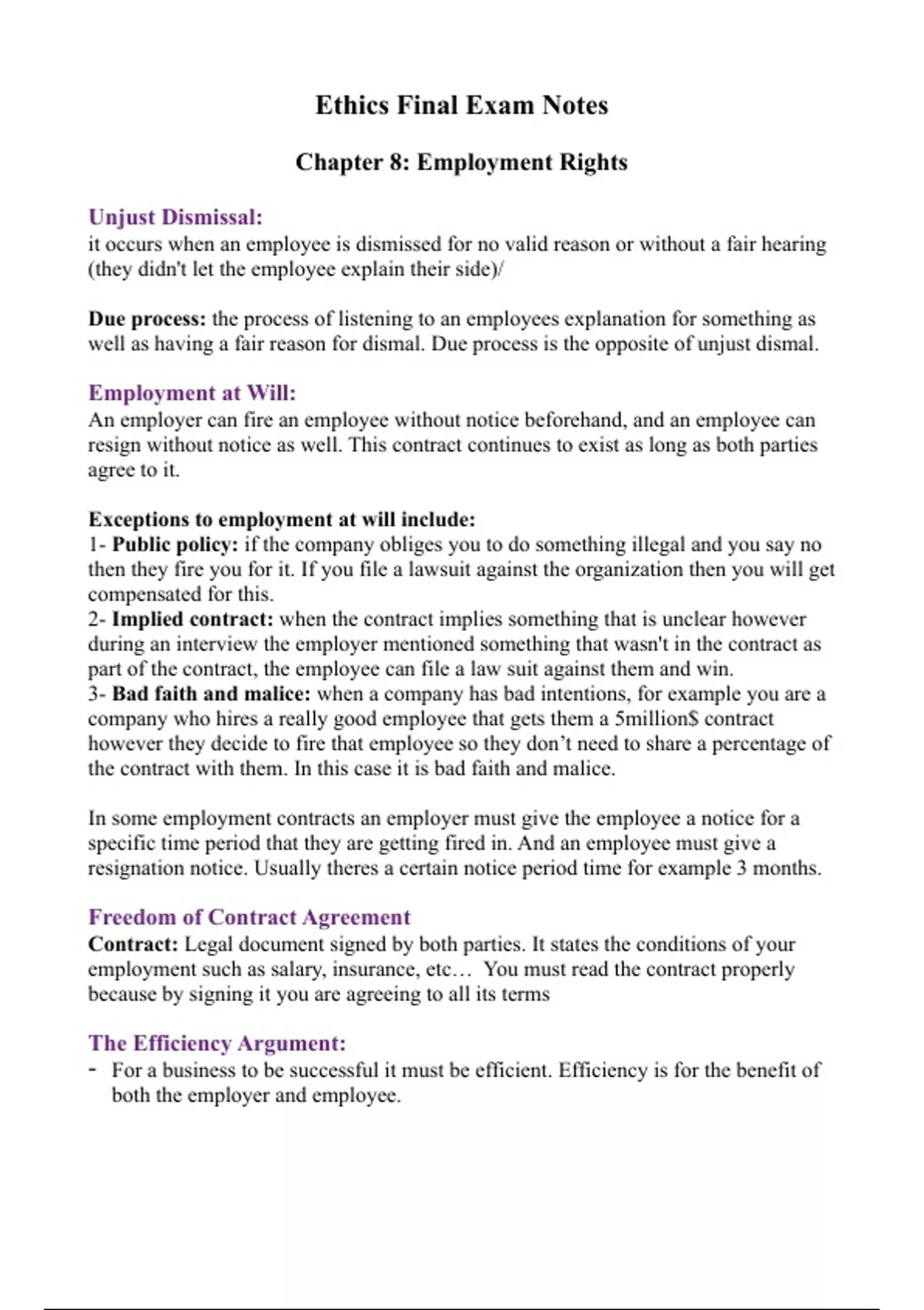 Two documents to help you study for the business ethics course. One of the documents are the first 6 chapters and the second document is the remaining 7 chapters. The notes are taken in class then revised and edited later using the Pearson Ethics and the Conduct book. The notes include examples and straight to the point explanations.