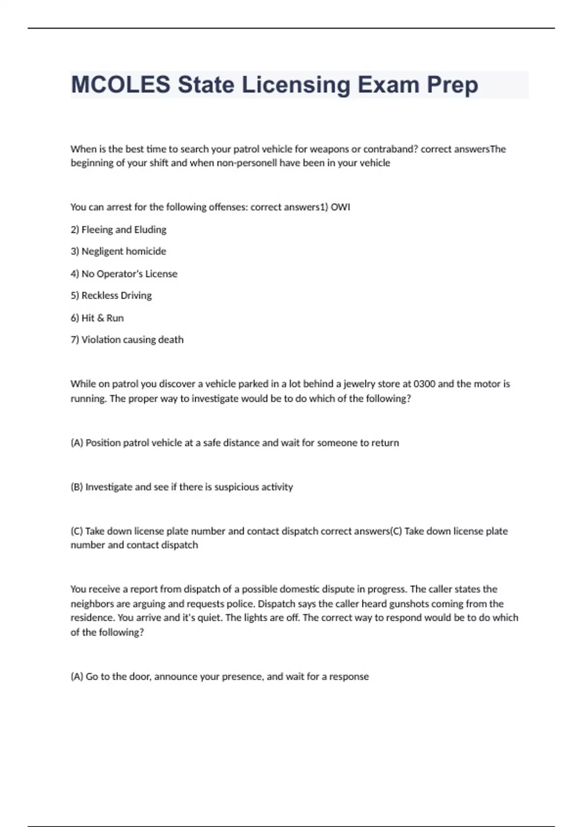 MCOLES State Licensing Exam Prep 2024 with 100% correct answers