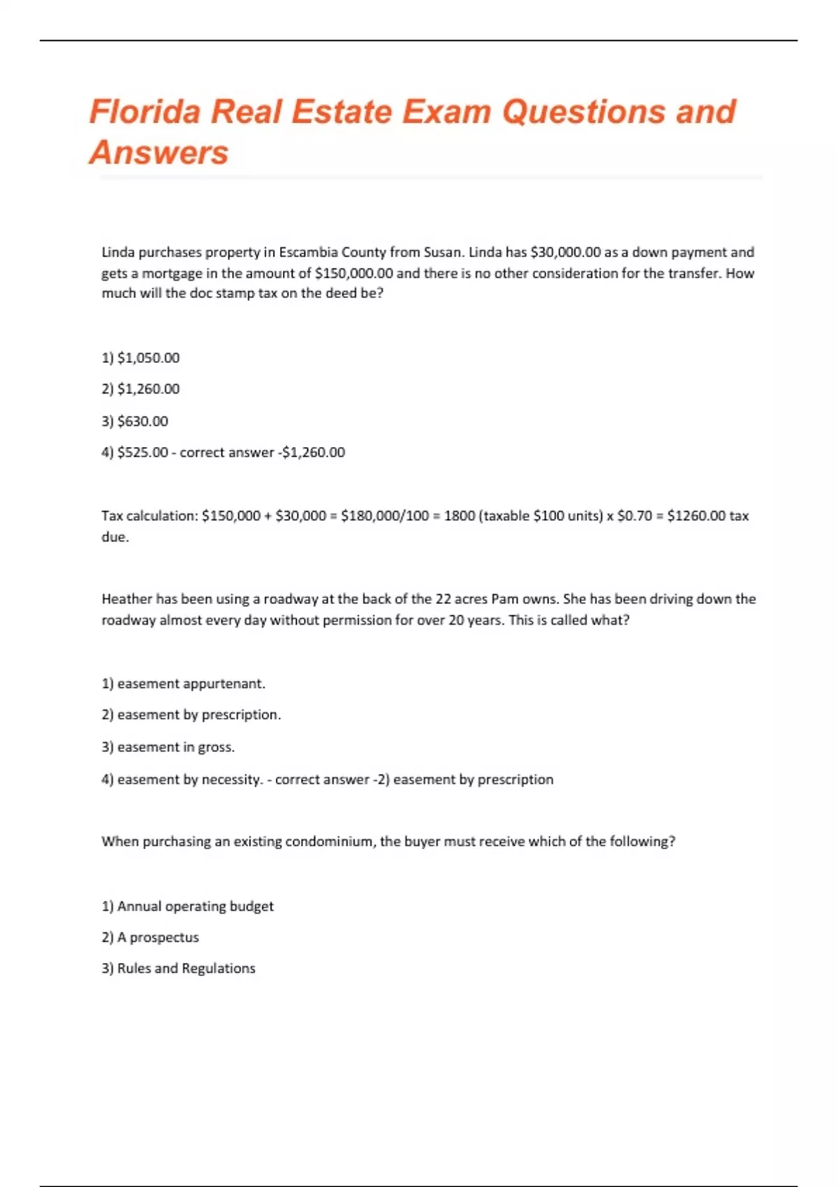 Florida Real Estate Exam BUNDLE Questions with 100% correct answers