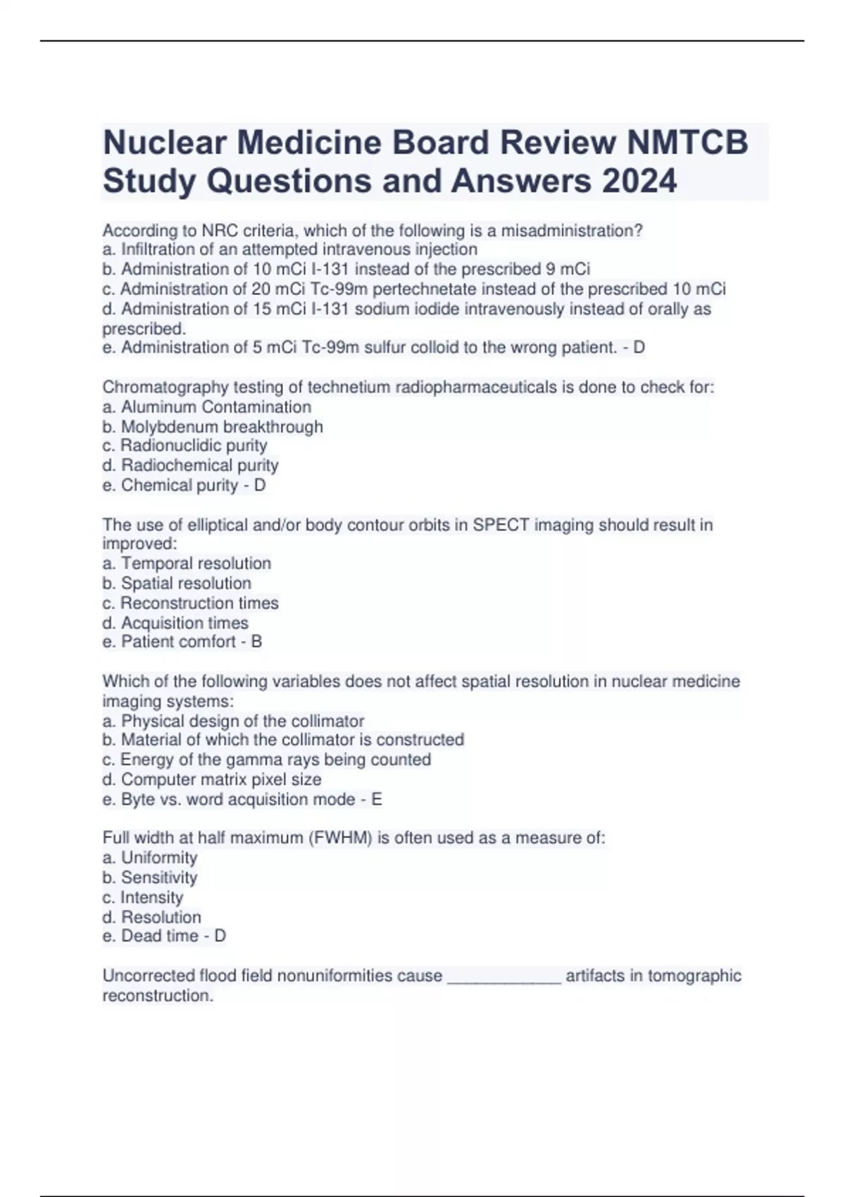 Nuclear Medicine Board Review NMTCB Study Questions and Answers 2024