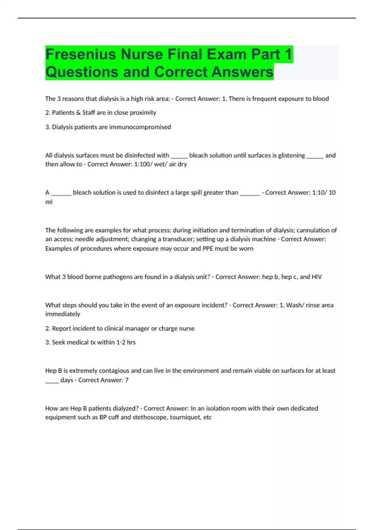 Fresenius annual competency test questions with answers 100% correct Bundle Compilation
