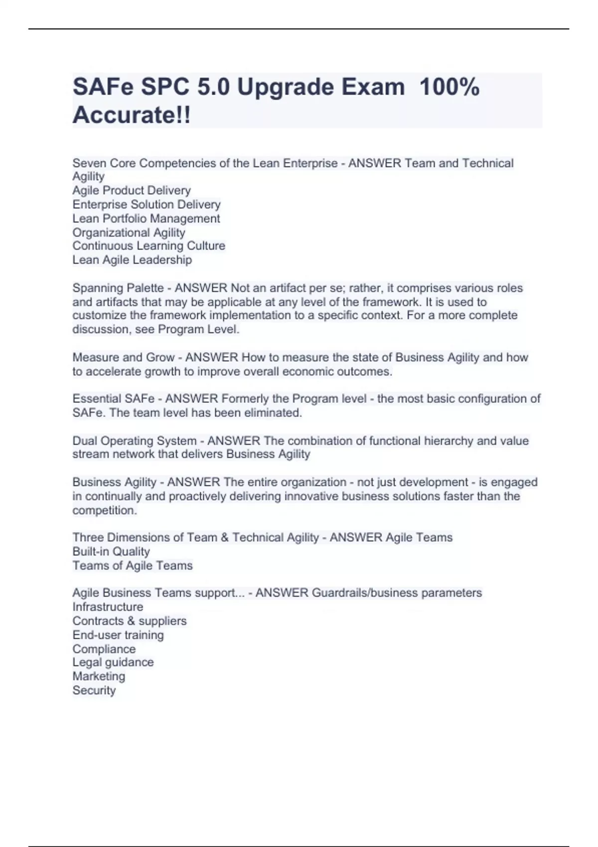 SAFe SPC 5.0 Upgrade Exam 100% Accurate!!