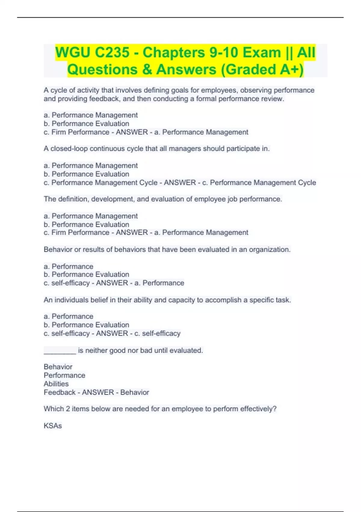 WGU C235 Training and Development Exam BUNDLE || complete Questions & Answers (100% Verified - Graded A+)