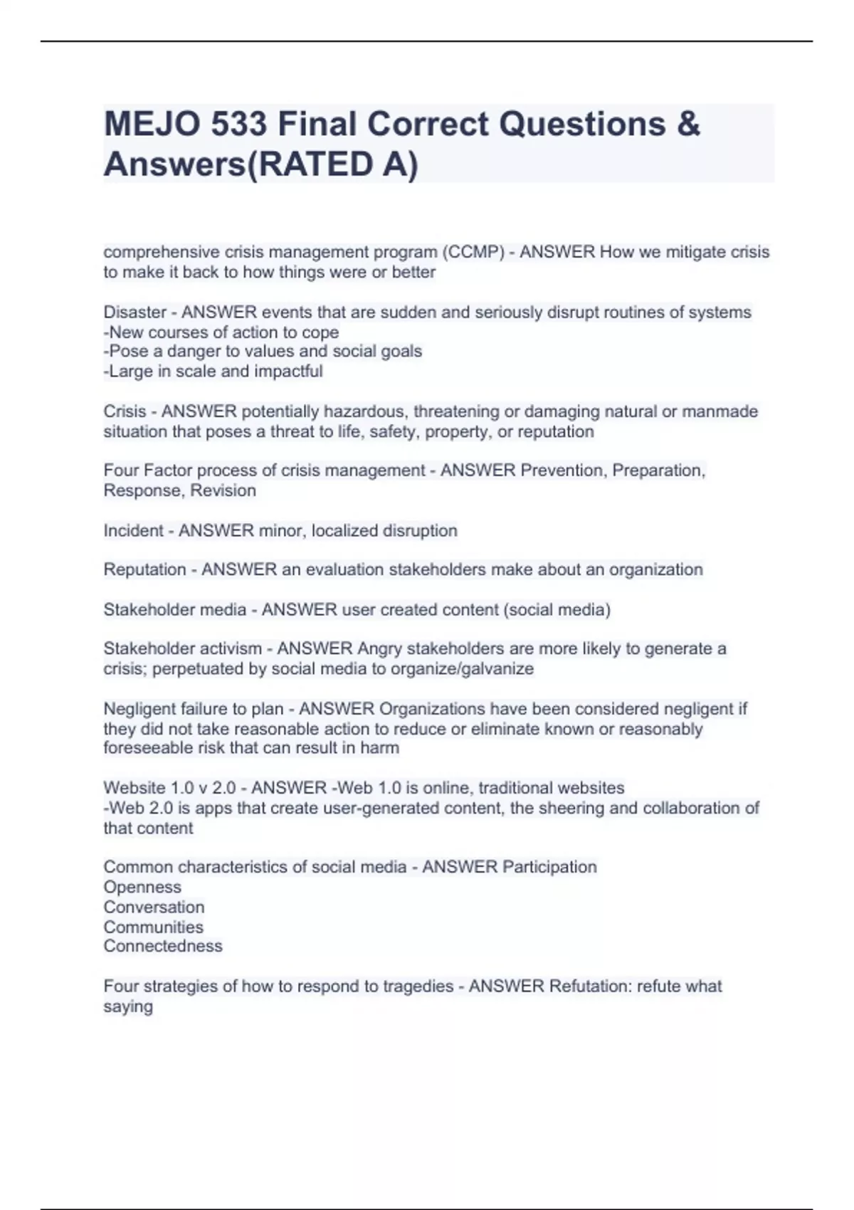 MEJO 533 EXAM BUNDLE(COMPLETE PACKAGE) Questions With Correct AnswersMEJO 533 EXAM BUNDLE(COMPLETE PACKAGE) Questions With Correct AnswersMEJO 533 EXAM BUNDLE(COMPLETE PACKAGE) Questions With Correct AnswersMEJO 533 EXAM BUNDLE(COMPLETE PACKAGE) Questions With Correct AnswersMEJO 533 EXAM BUNDLE(COMPLETE PACKAGE) Questions With Correct AnswersMEJO