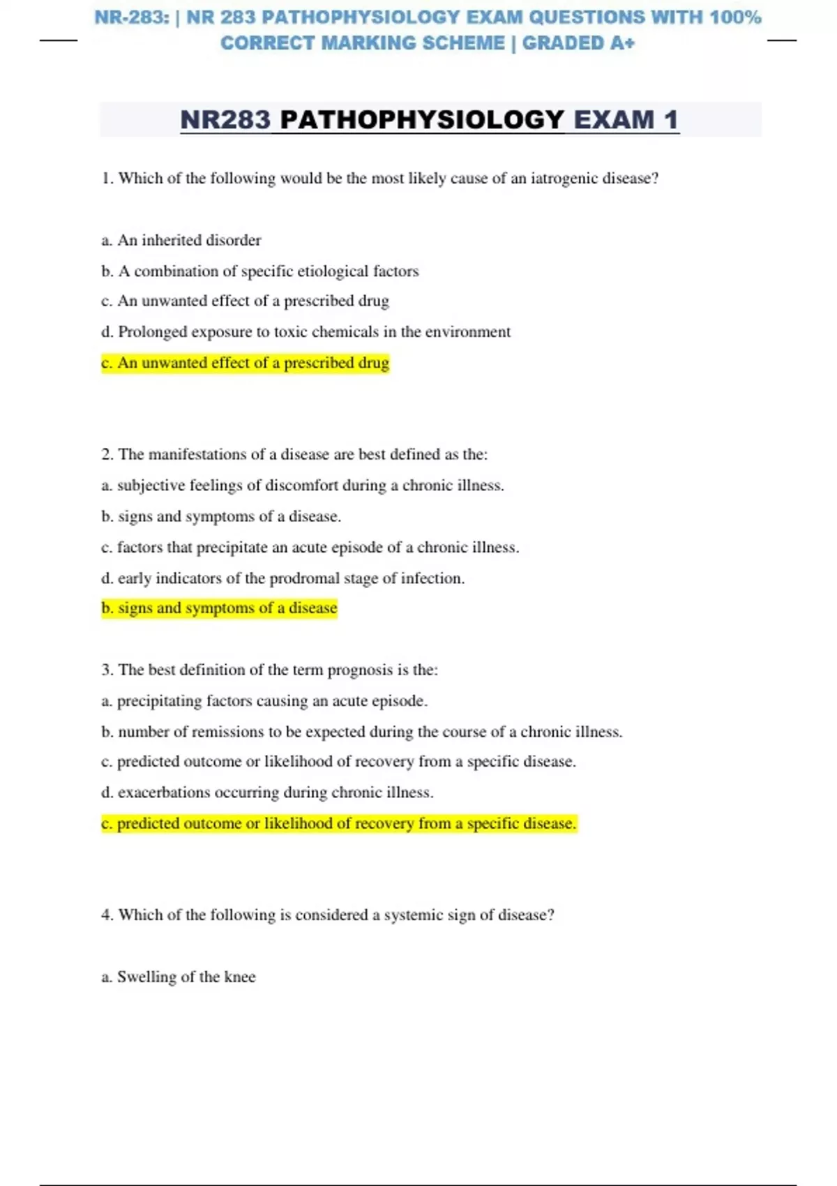ALL IN ONE COMPLETE BUNDLE PACK /PACKAGE DEAL FOR NR-283: | NR 283 PATHOPHYSIOLOGY QUESTIONS WITH 100% CORRECT ANSWERS| GRADED A+