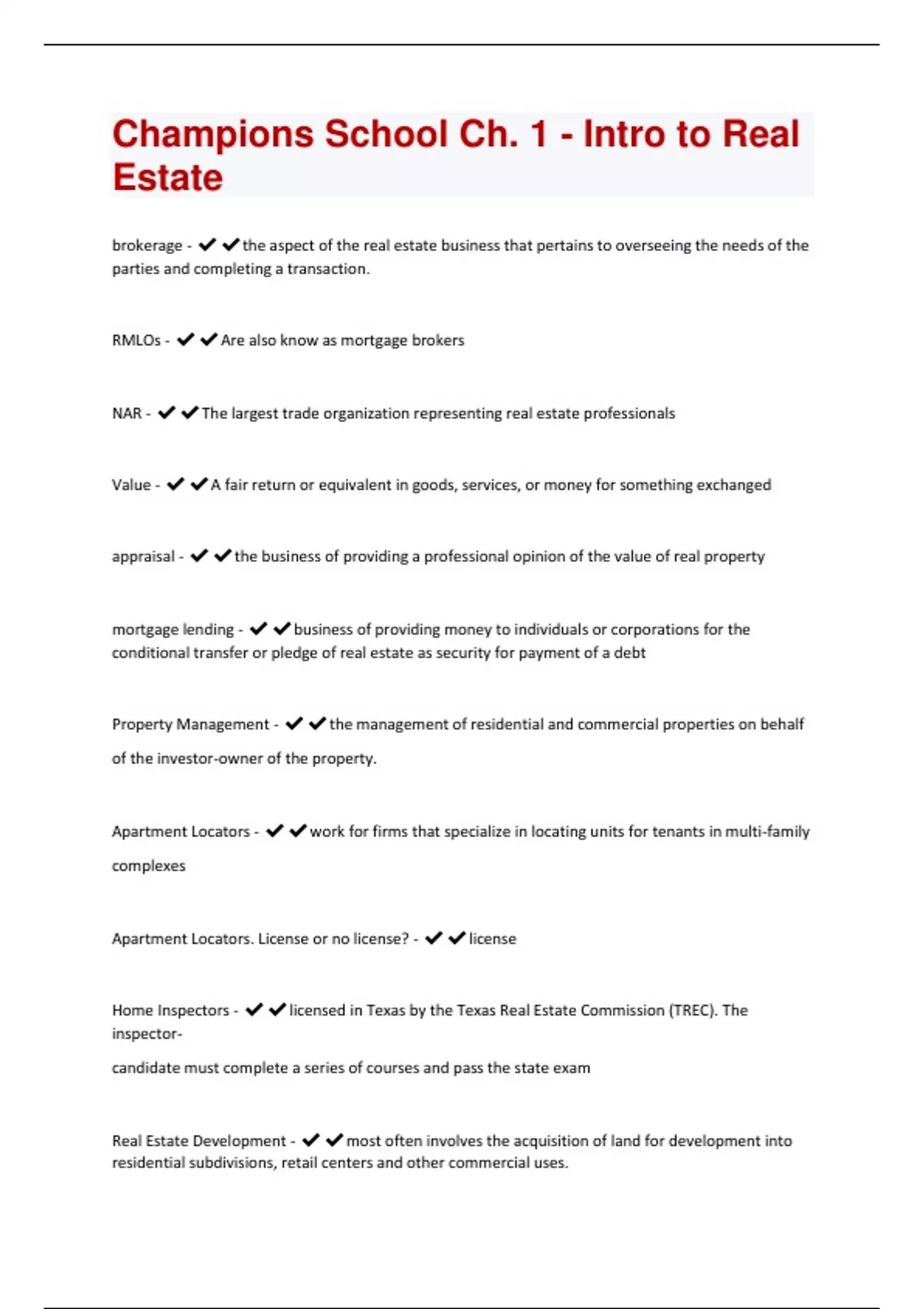 Champions School of Real Estate Bundled Exams Questions With Complete Solutions (Graded A+) Guaranteed Success