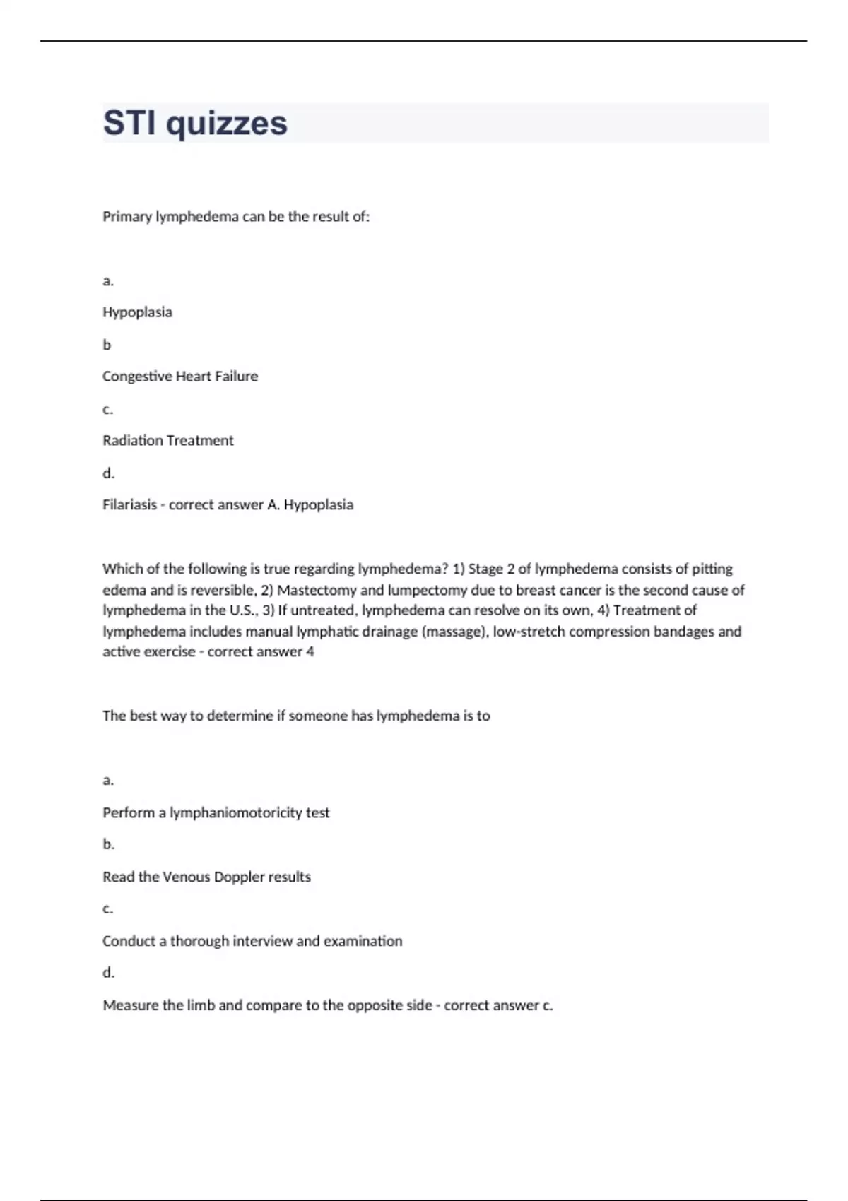 package deal for LYMPHEDEMA EXAM 2023/2024 verified to pass