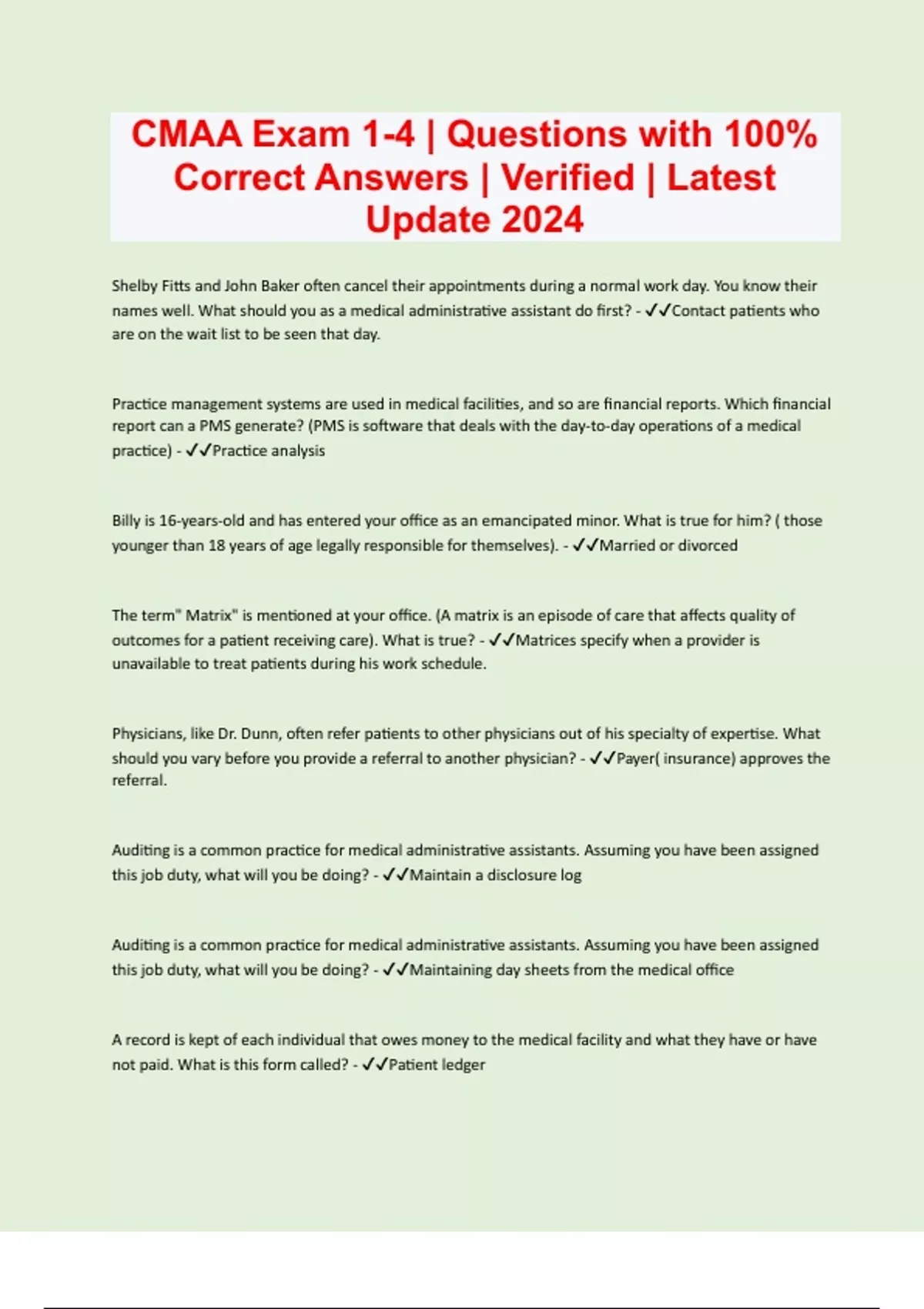 CMAA Exam Prep | Questions with 100% Correct Answers | Verified | Latest Update 2024