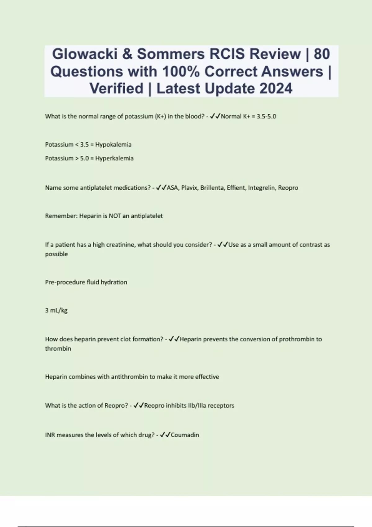 RCIS Exam Review | Questions with 100% Correct Answers | Verified | Latest Update 2024