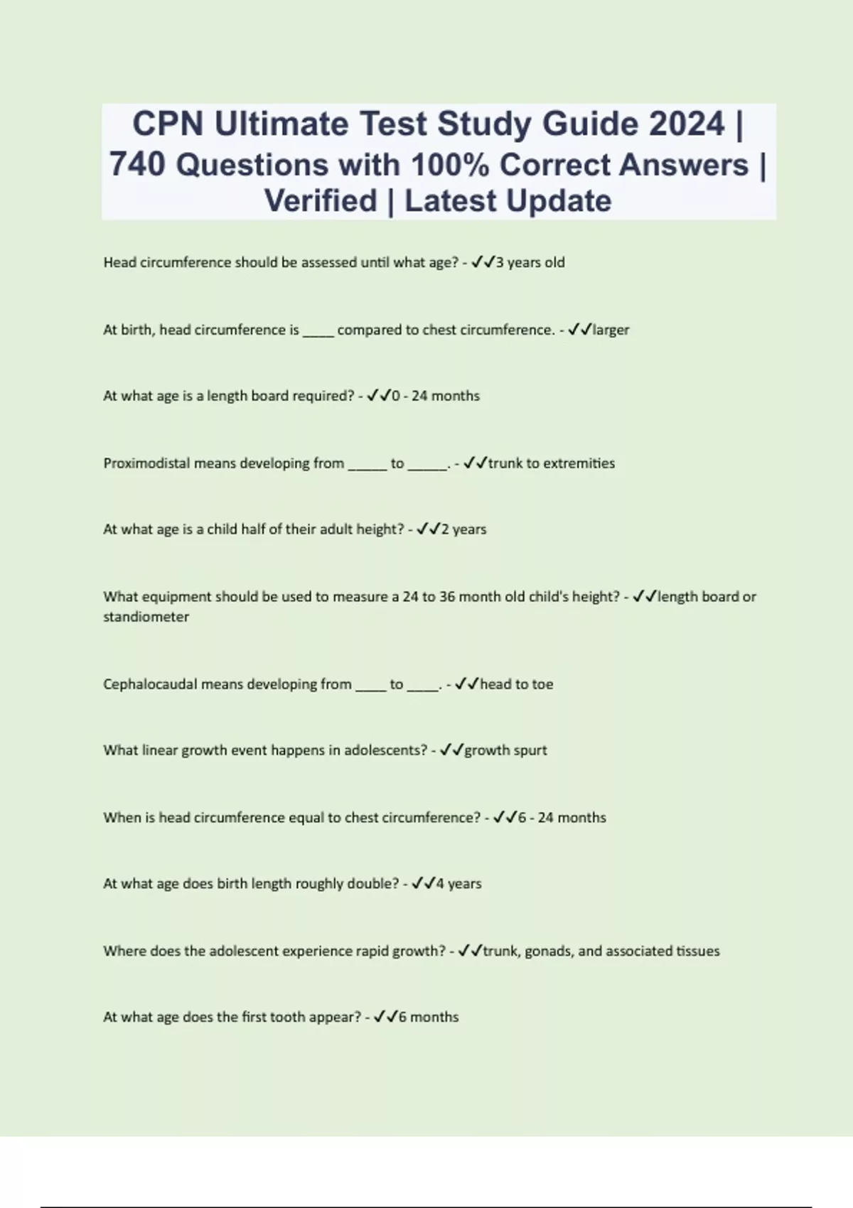 CPN Exam Study Guide | Questions with 100% Correct Answers | Verified | Latest Update 2024