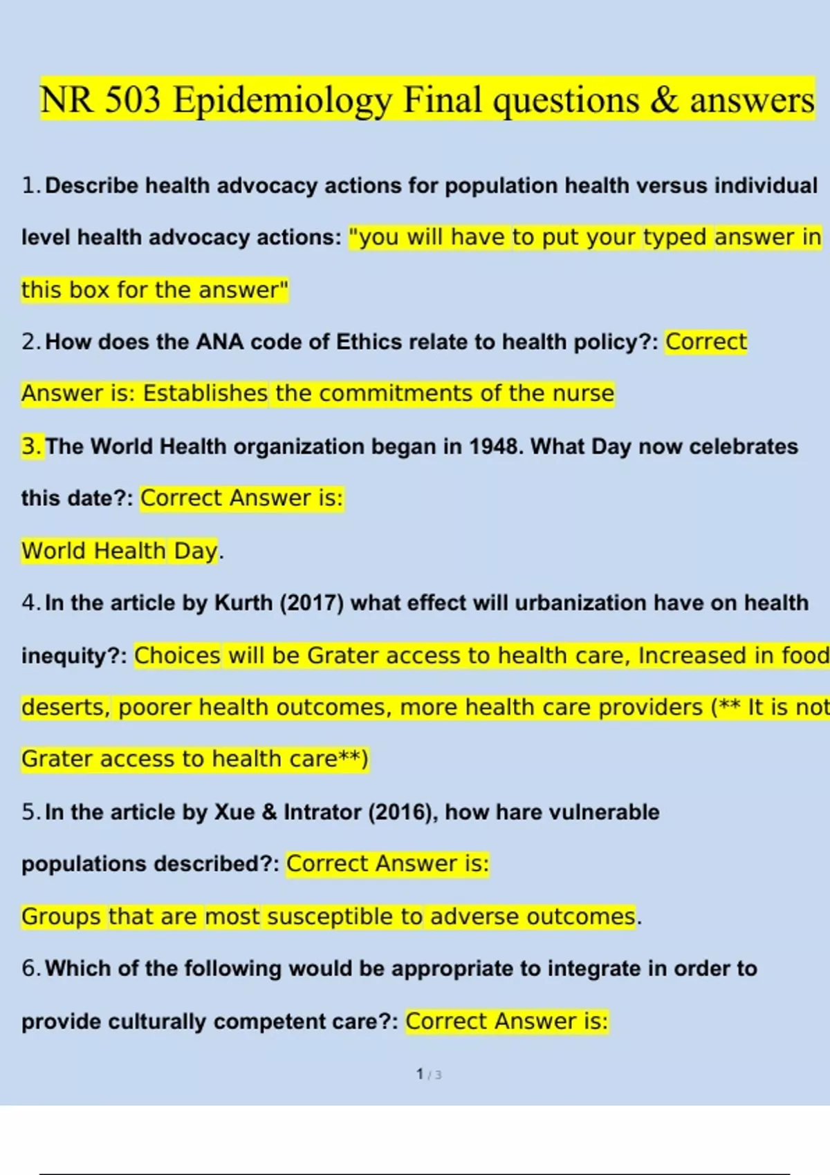 NR-503 Epidemiology final Exam Questions and Answers 2024/2025