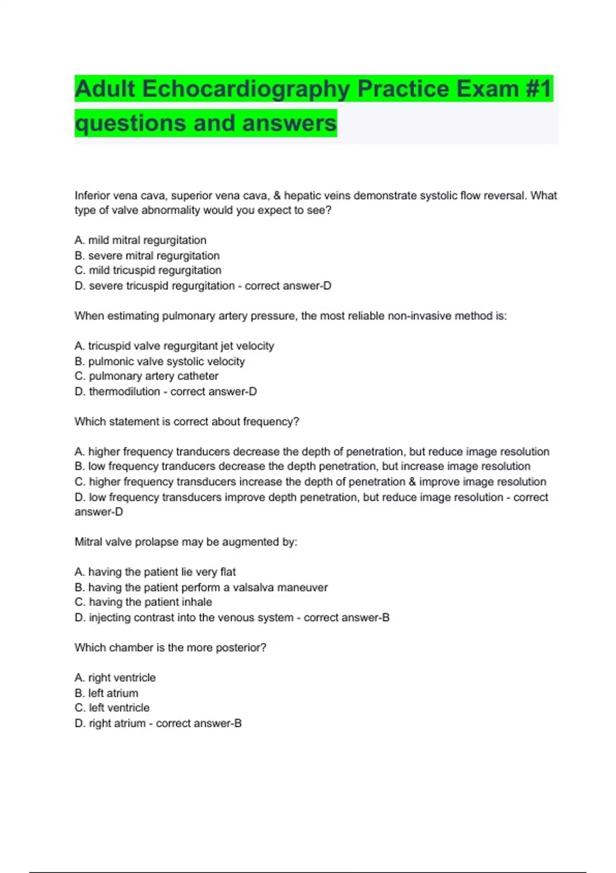 Adult Echocardiography Practice Exam # 3 questions and answers