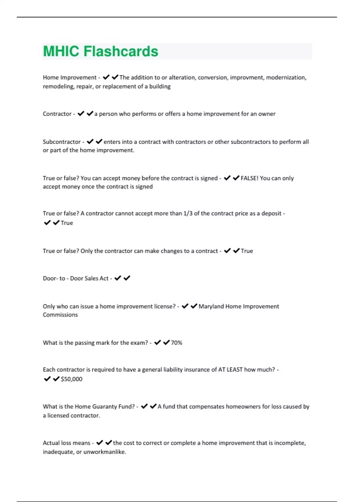 MHIC NASCLA CONTRACTORS EXAM REVIEW QUESTIONS WITH 100 % CORRECT ANSWERS | VERIFIED