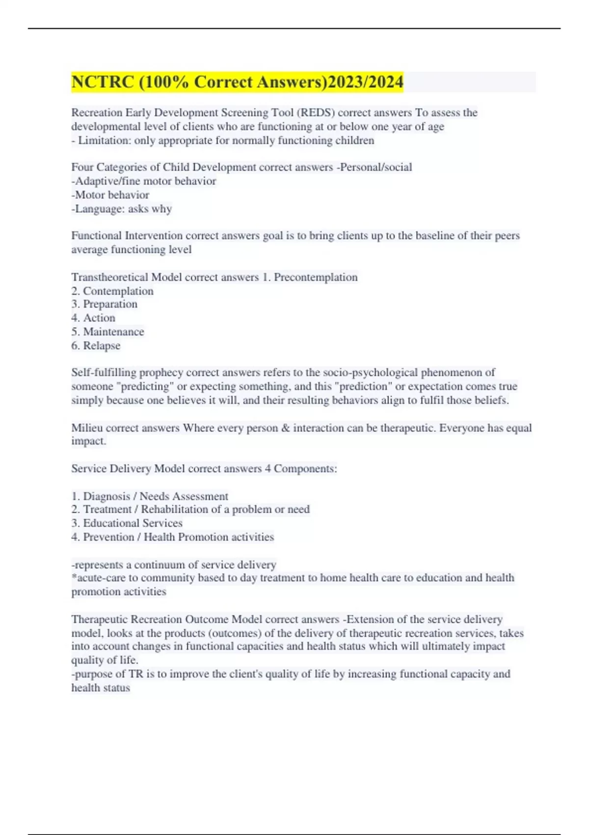 NCTRC Exam Study 2023/2024 (Possible Questions with Complete Solutions)