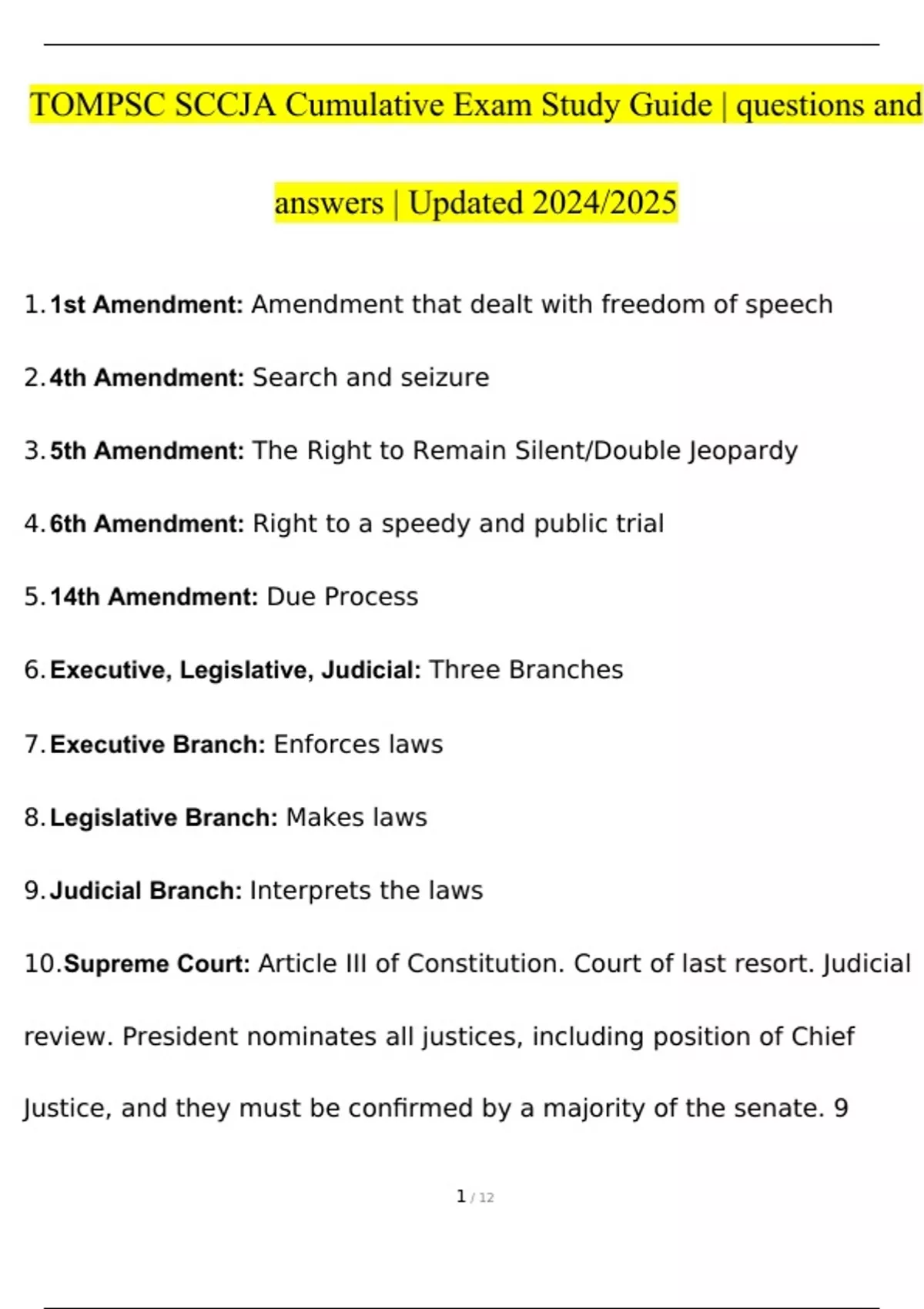BEST REVIEW TOMPSC SCCJA Cumulative Exam-with 100% verifiedsolutions-2024/2025