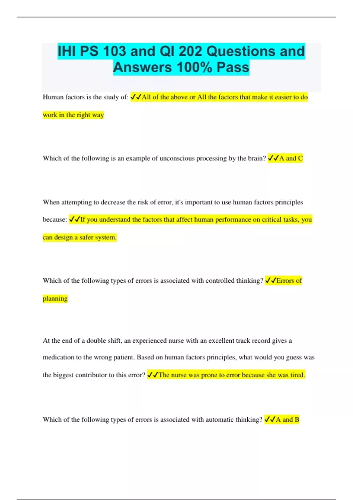 IHI PS 103 and QI 202 Questions and Answers 100% Pass