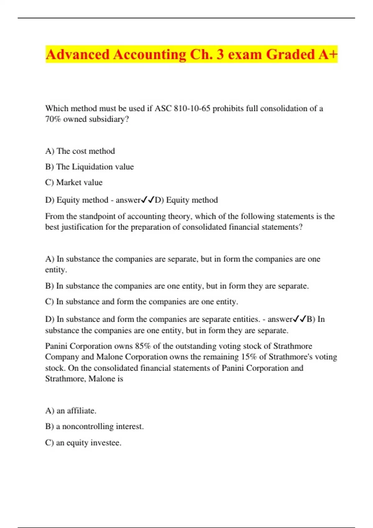 ADVANCED ACCOUNTING EXAM PACK WITH VERIFIED SOLUTIONS GRADED A+