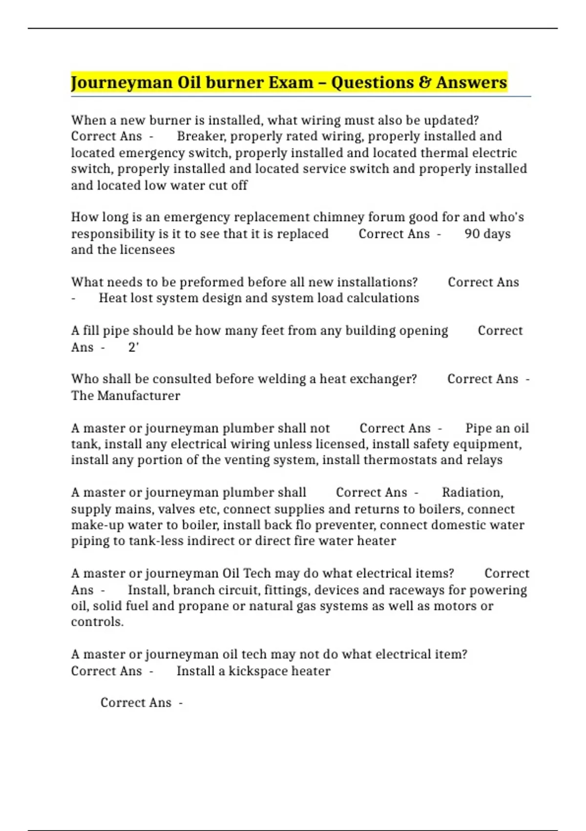 BUNDLE::: OIL BURNER EXAMS COMPILED (LATEST UPDATE)