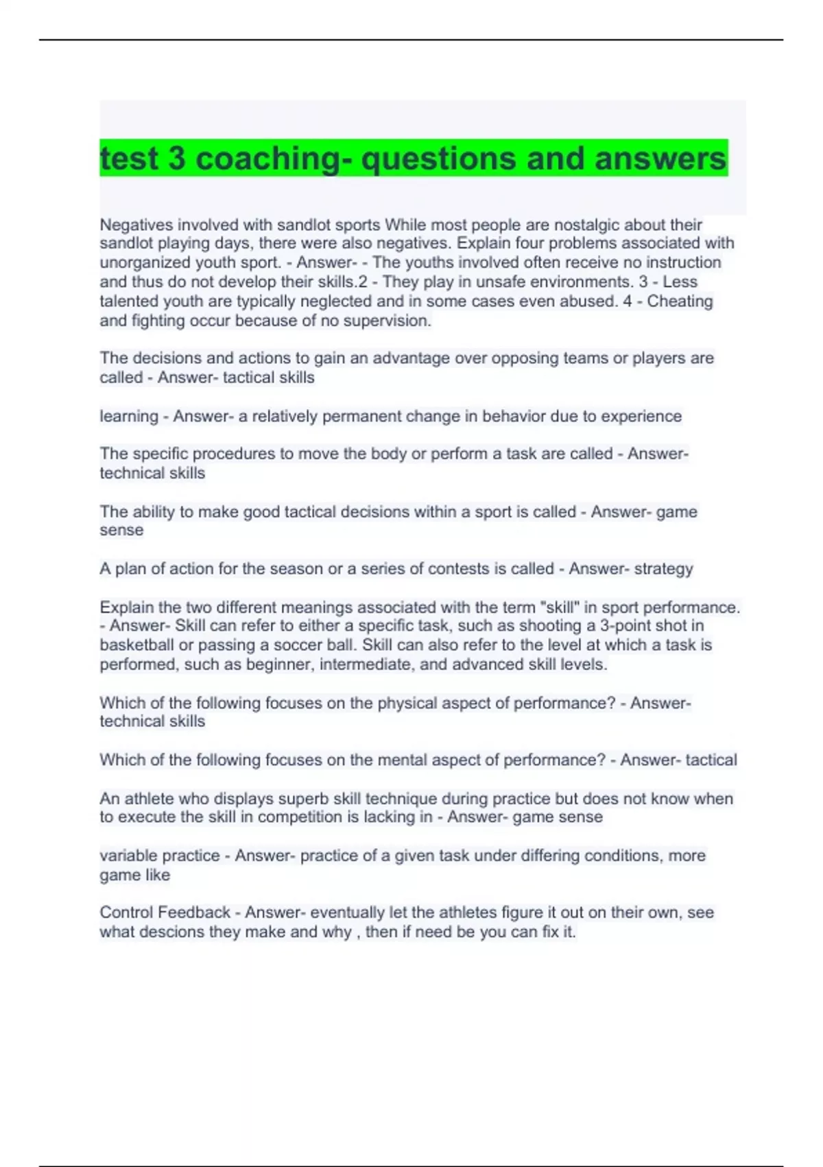 1 Exam (elaborations) test 3 coaching- questions and answers 2 Exam (elaborations) Techniques of Coaching Exam Questions and Answers Graded A 3 Exam (elaborations) Successful Coaching ASEP Test 100% Solved 4 Exam (elaborations) Sport Coaching Exam Questions and Answers 5 Exam (elaborations) Principles of Coaching Test Review #1 Questions and An