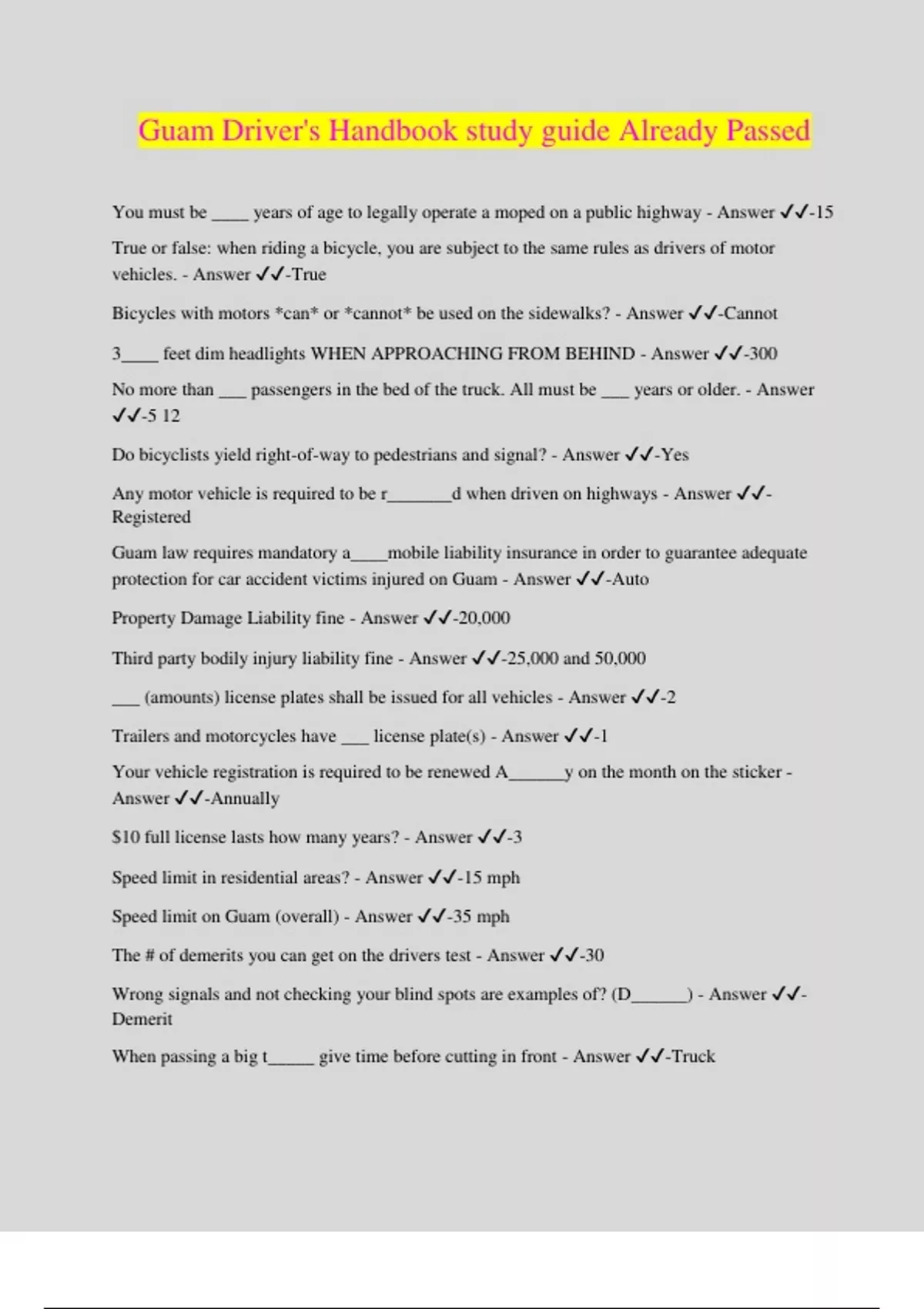 Guam permit Bundled Exams Questions and Answers | 100% Verified & Updated 2024