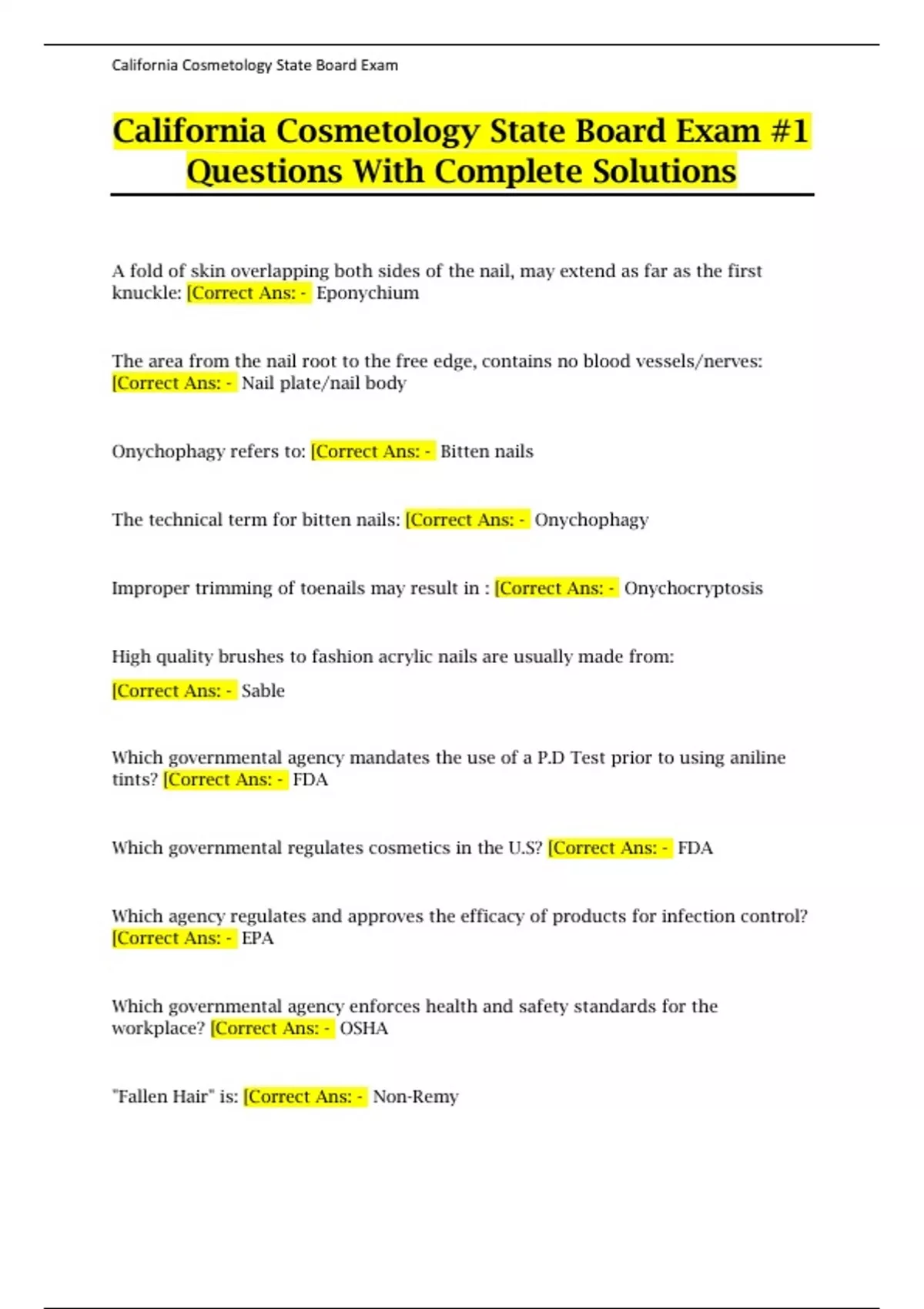 Complete; California Cosmetology State Board Exams With 100% Correct Answers|2024 Guide|Assured Pass