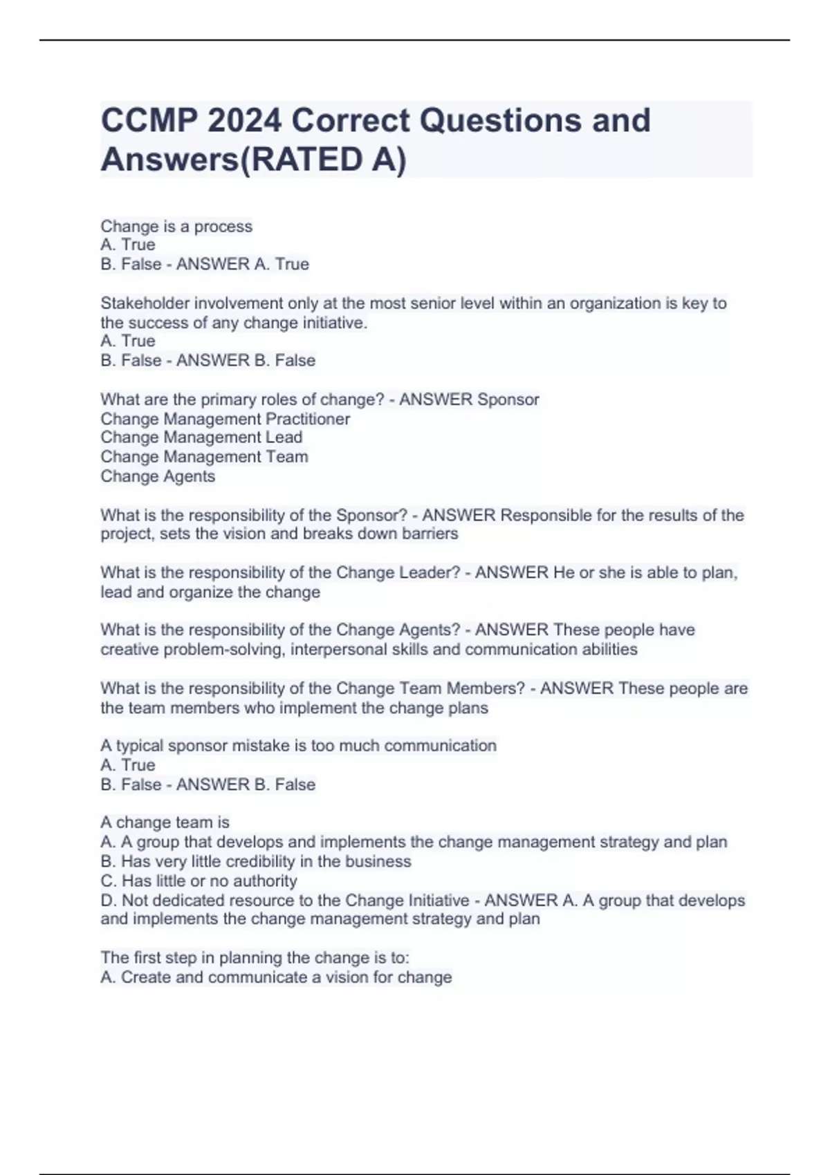 CCMP 2024 Correct Questions and Answers(RATED A)