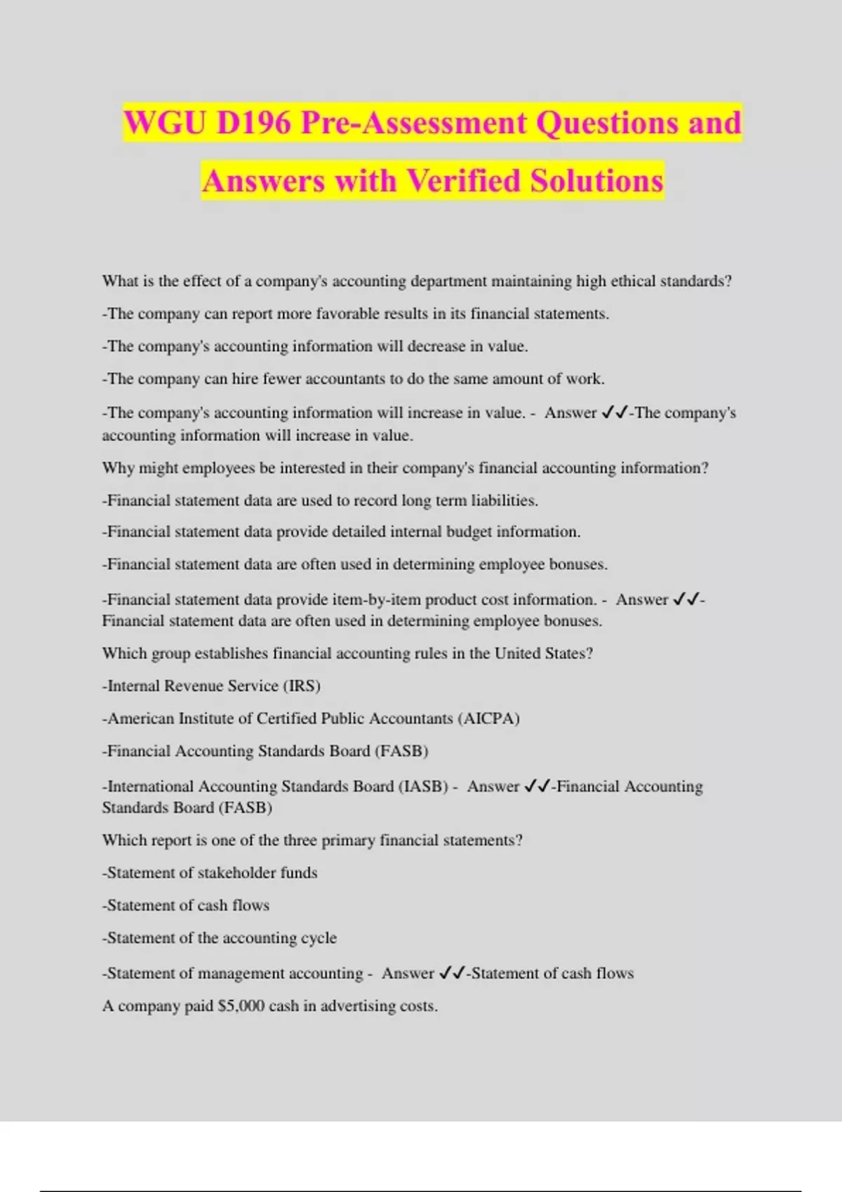 D196 Study Guide Questions and Answers Rated A