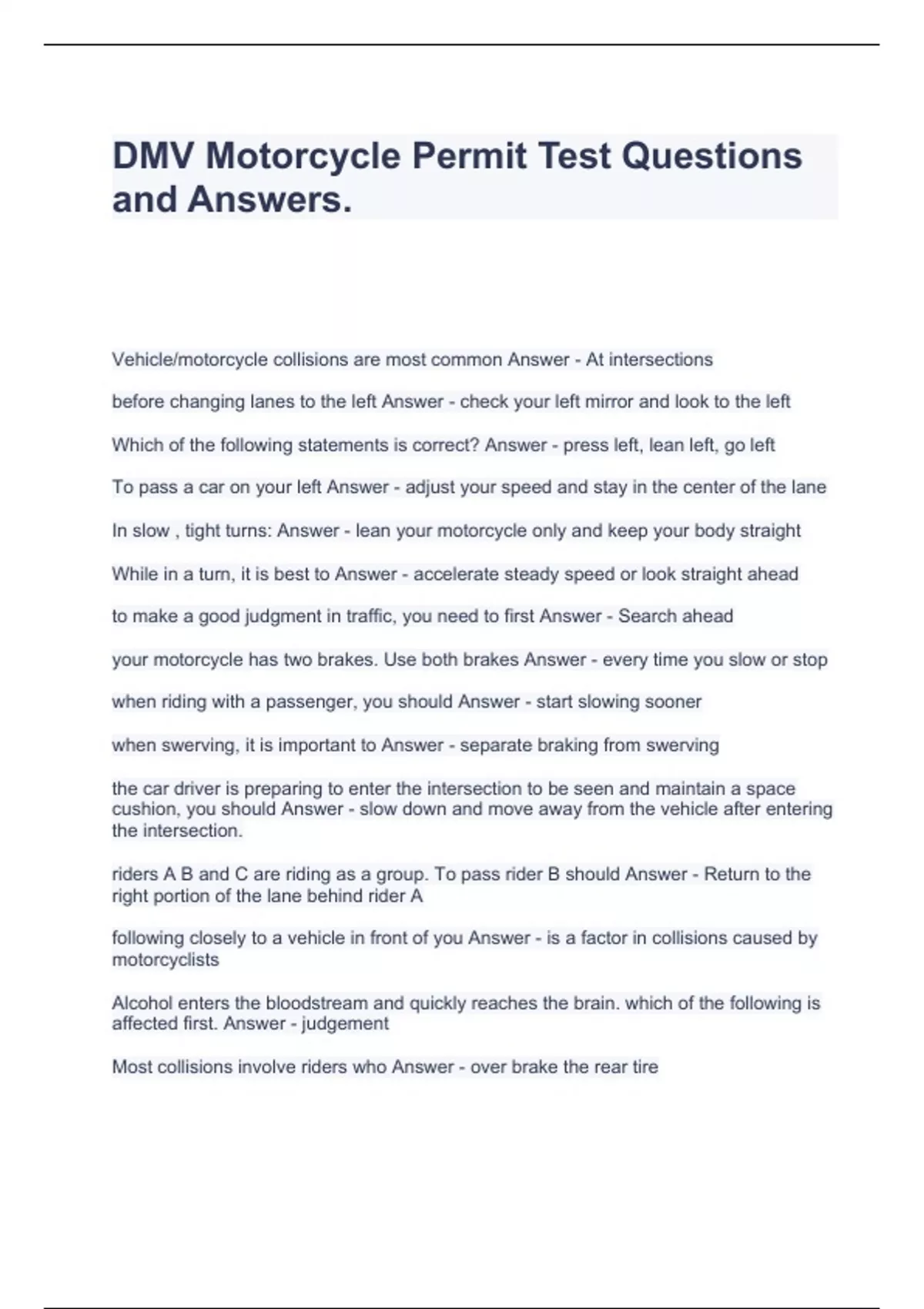Motorcycle Permit Test Study Guide Questions and Answers.