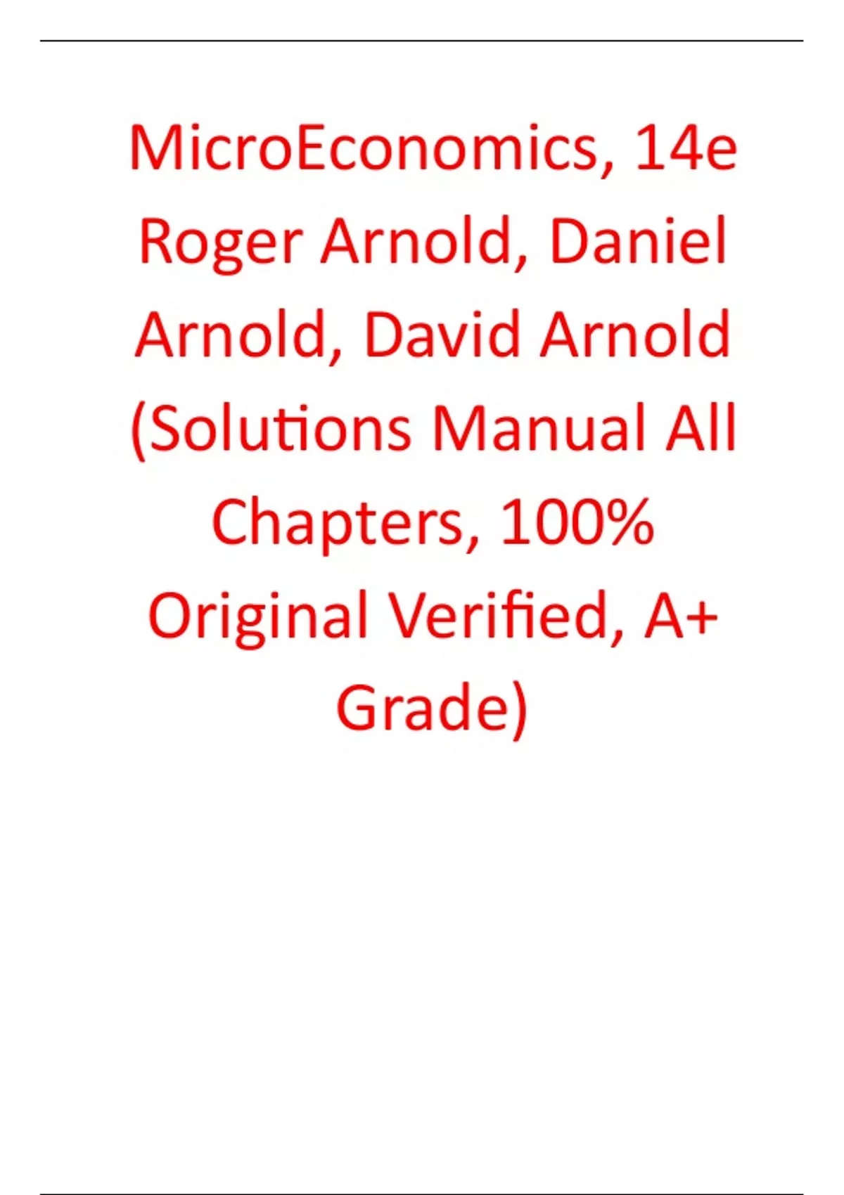 Solutions Manual With Test Bank For MicroEconomics 14th Edition By Roger Arnold, Daniel Arnold, David Arnold (All Chapters, 100% Original Verified, A+ Grade) Solutions Manual With Test Bank For MicroEconomics 14th Edition By Roger Arnold, Daniel Arnold, David Arnold (All Chapters, 100% Original Verified, A+ Grade)