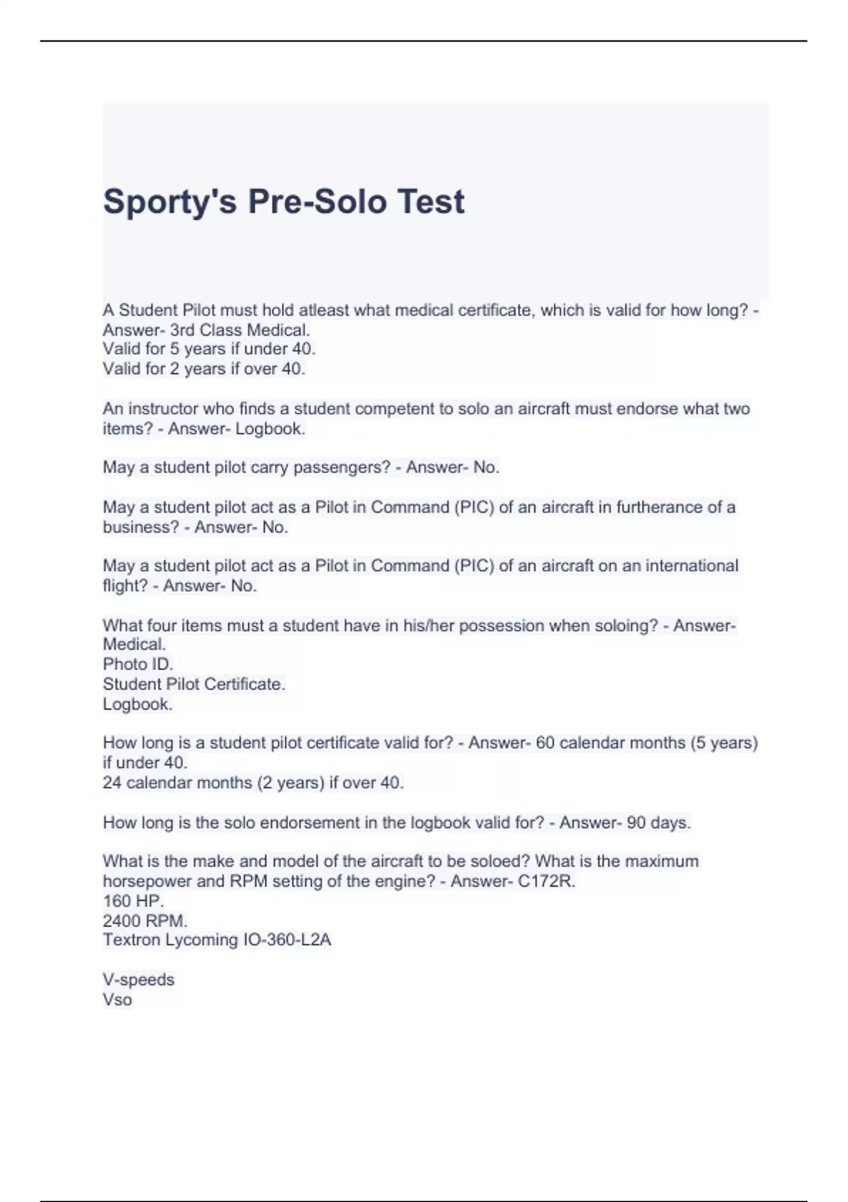 1 Exam (elaborations) Sporty s Pre-Solo Test 100% correct Answers 2 Exam (elaborations) Private Pilot Pre-Solo Written Exam Questions with correct Answers 3 Exam (elaborations) Private Pilot Pre-Solo Exam Questions and Answers 4 Exam (elaborations) Pre-solo Written Test Questions and Answers 5 Exam (elaborations) Pre-Solo Written Exam Questions