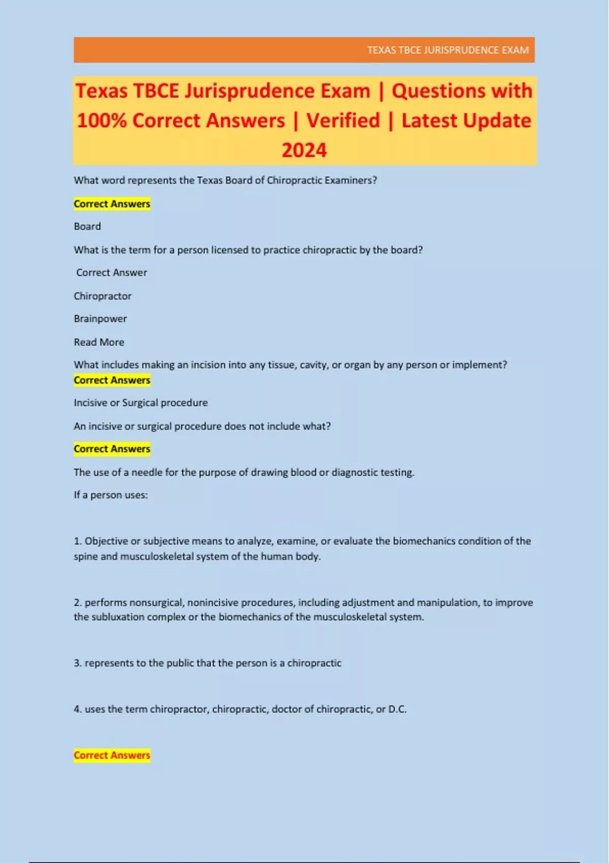 Complete set For: Texas Jurisprudence | Nursing Jurisprudence Exam Nursing| Nursing Jurisprudence Exam Nursing (Strathmore University) Questions and Answers (2023/2024) (Verified Answers).