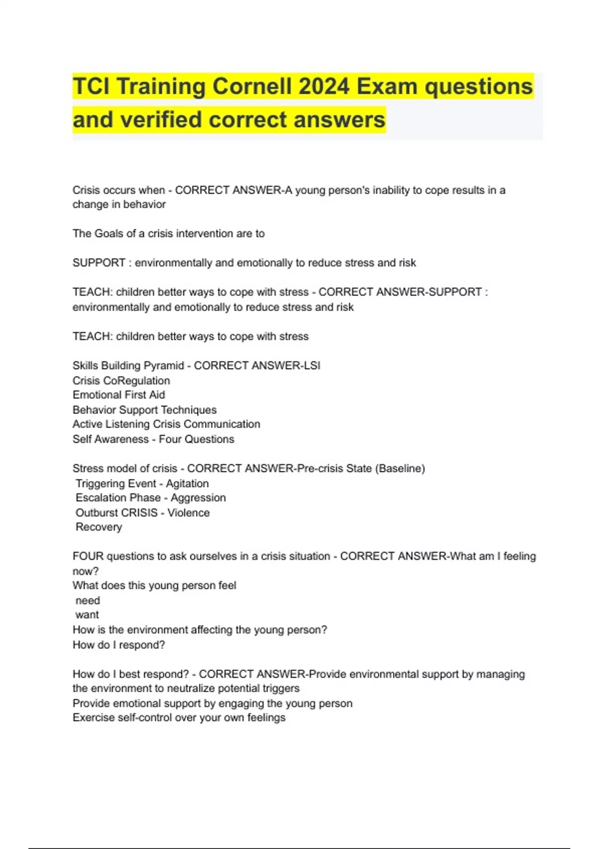 TCI Training Cornell 2024 Exam questions and verified correct answers