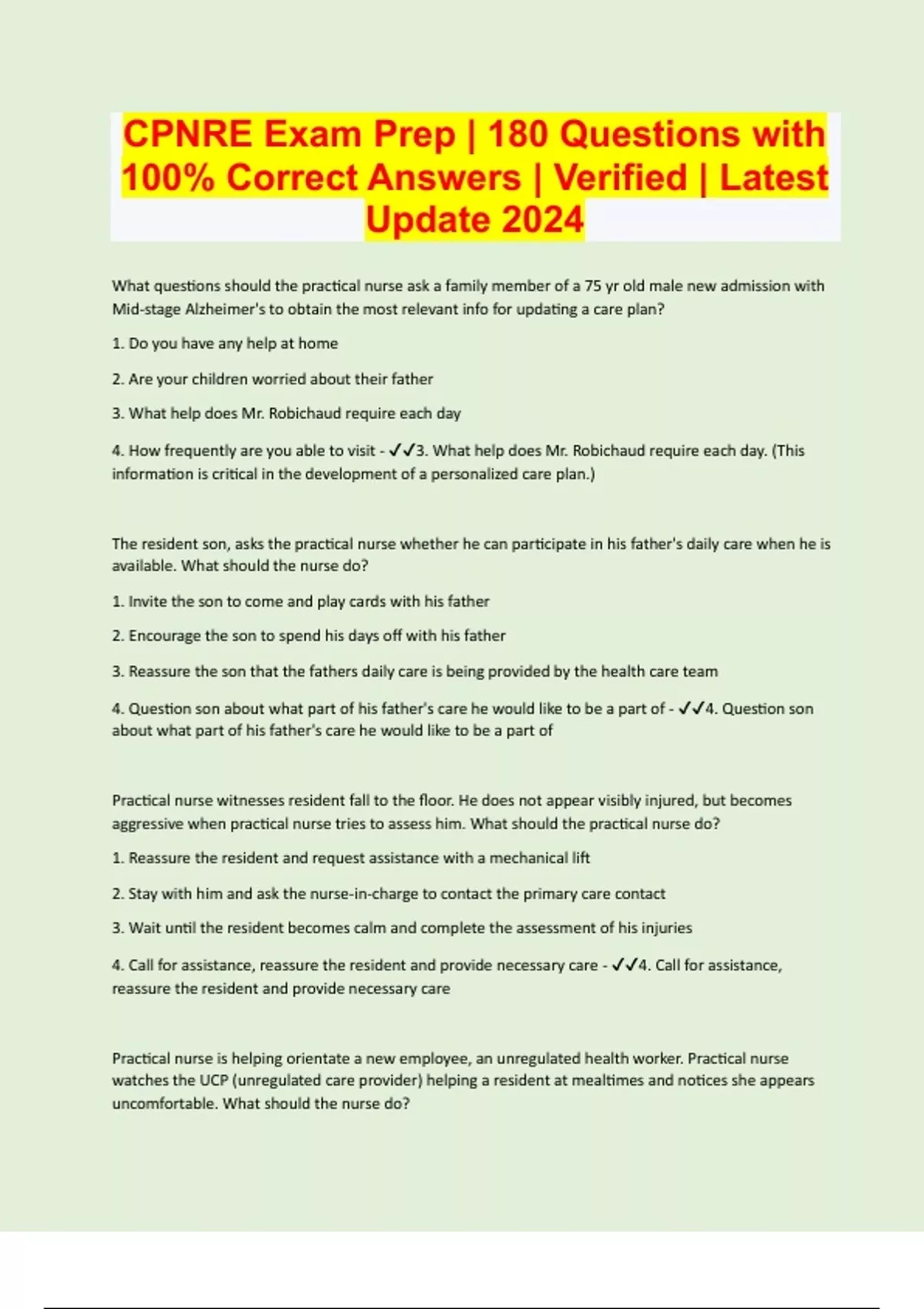 CPNRE Exam Prep | 180 Questions with 100% Correct Answers | Verified | Latest Update 2024